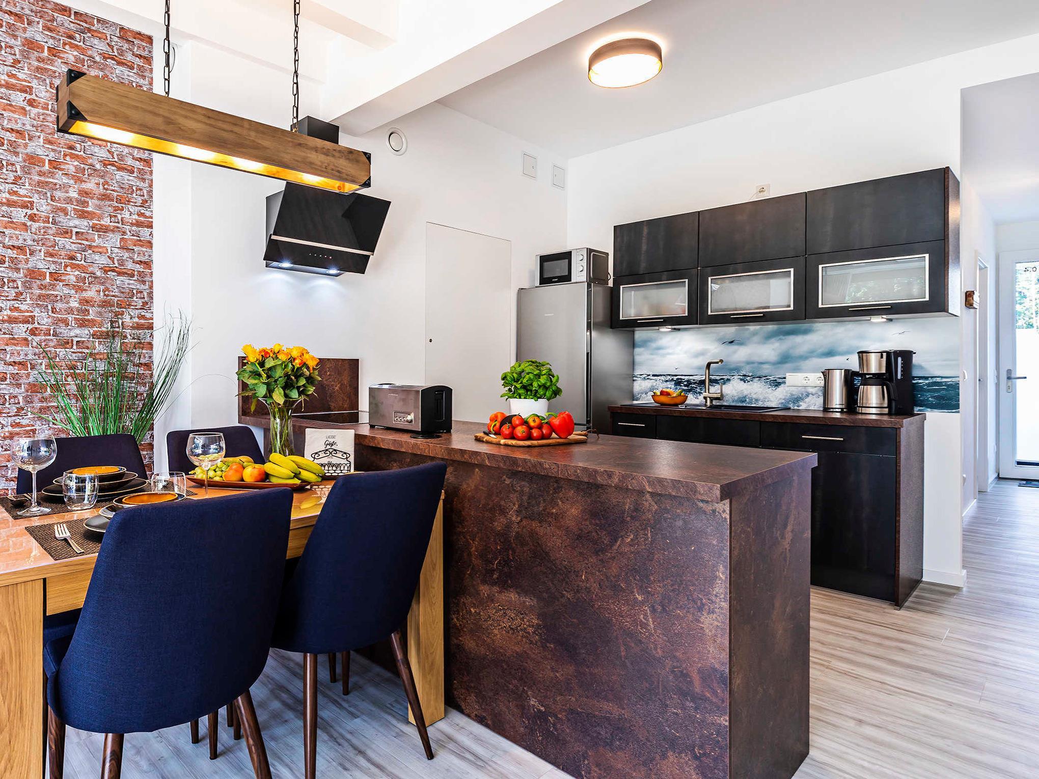 Moderne Ferienwohnung in Prora mit direktem Strandzugang, Terrasse und Strandkorb inklusive.