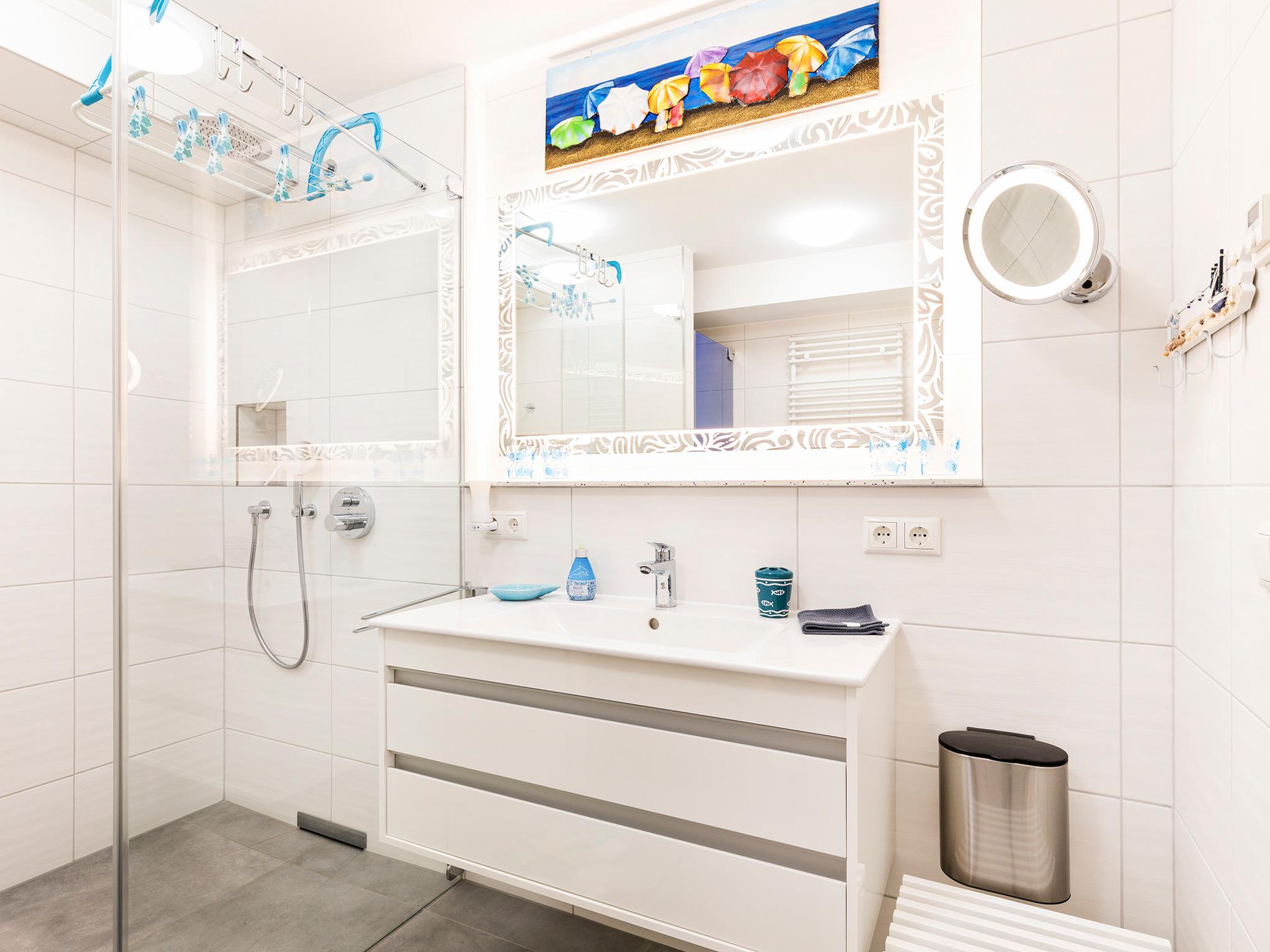 - Badezimmer 1: Regendusche, WC, Haartrockner