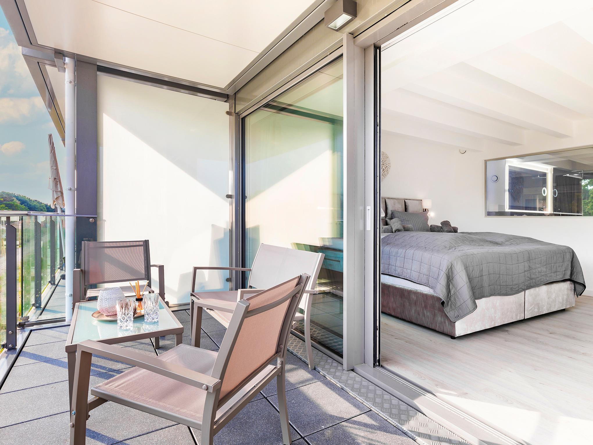 Moderne Ferienwohnung in Prora mit Meerblick, Balkon, WLAN und direktem Strandzugang.