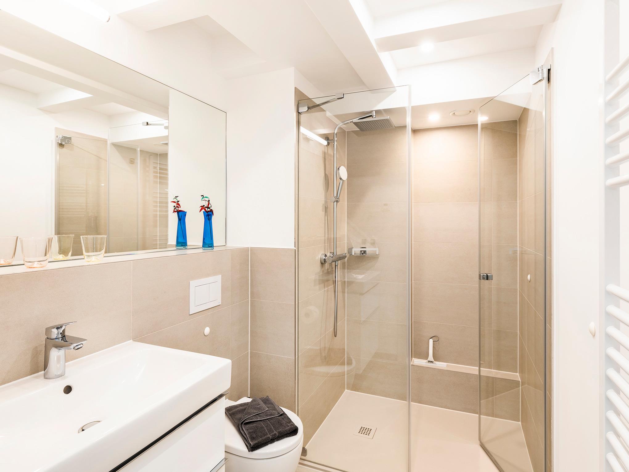- Badezimmer 1: Regendusche, WC, Waschbecken