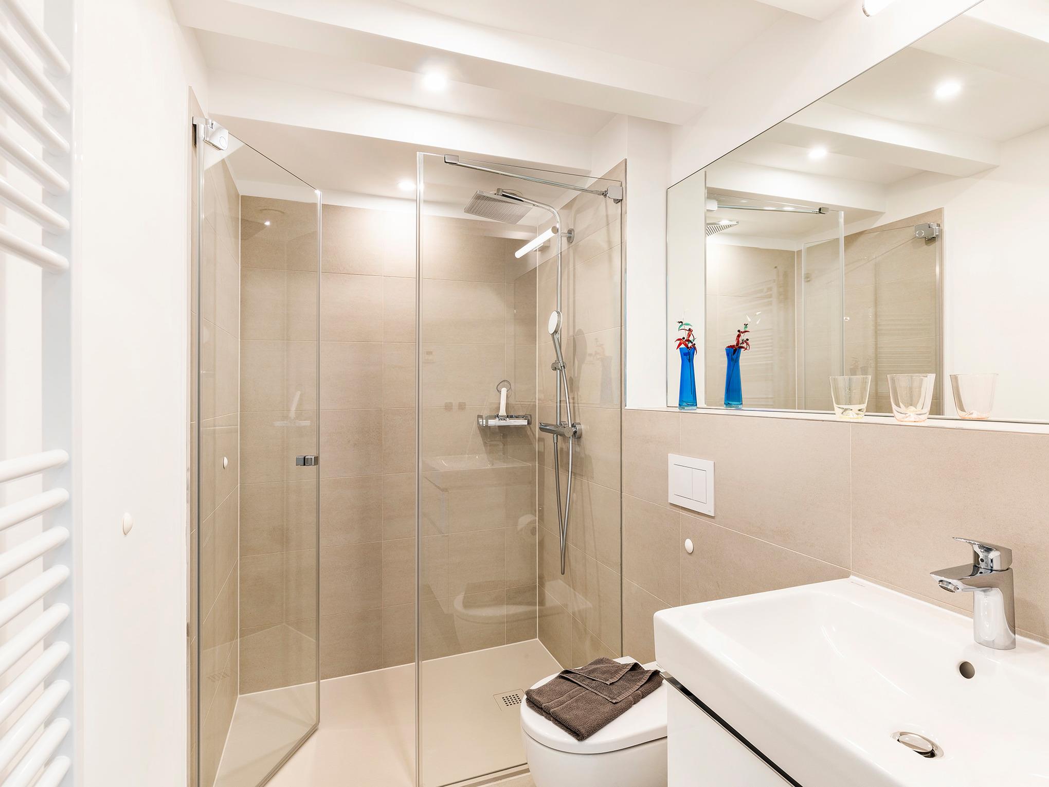 - Badezimmer 2: Regendusche, WC, Waschbecken