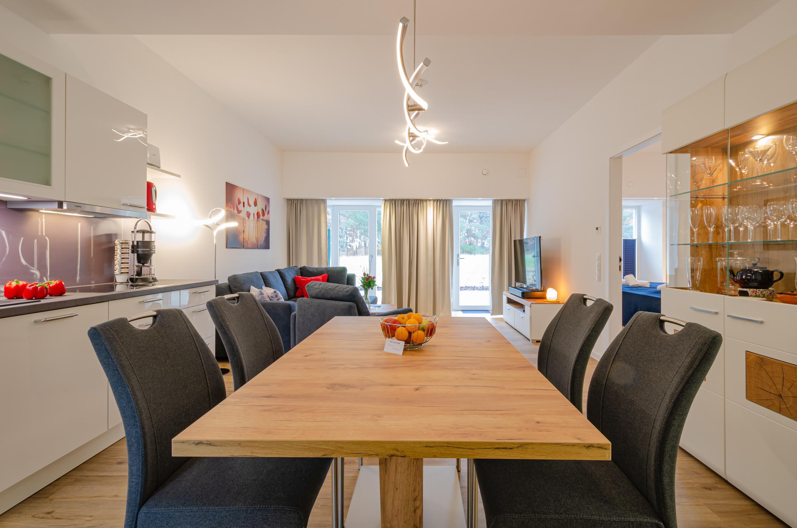 Das Appartement "Ostseebrise" befindet sich im Erdgeschoss des Hauses Arkona und bietet Platz für bis zu vier Personen. Auf der großen Terrasse mit Blick auf die Dünenlandschaft können Sie das Rauschen des nur 100 m entfernten Meeres und eine frische Ostseebrise genießen.