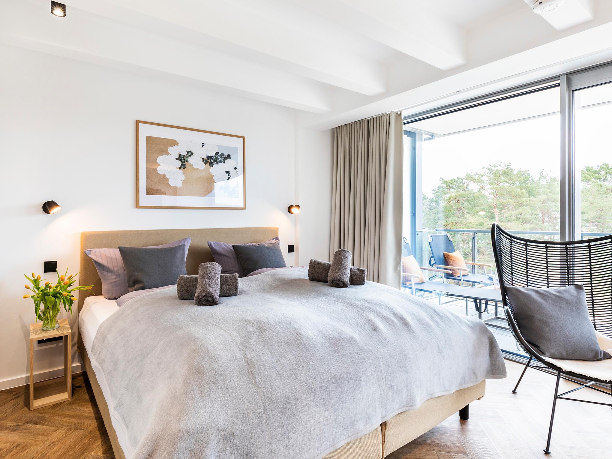 Helle Maisonette-Ferienwohnung in Binz mit Meerblick, zwei Balkonen und direktem Strandzugang.