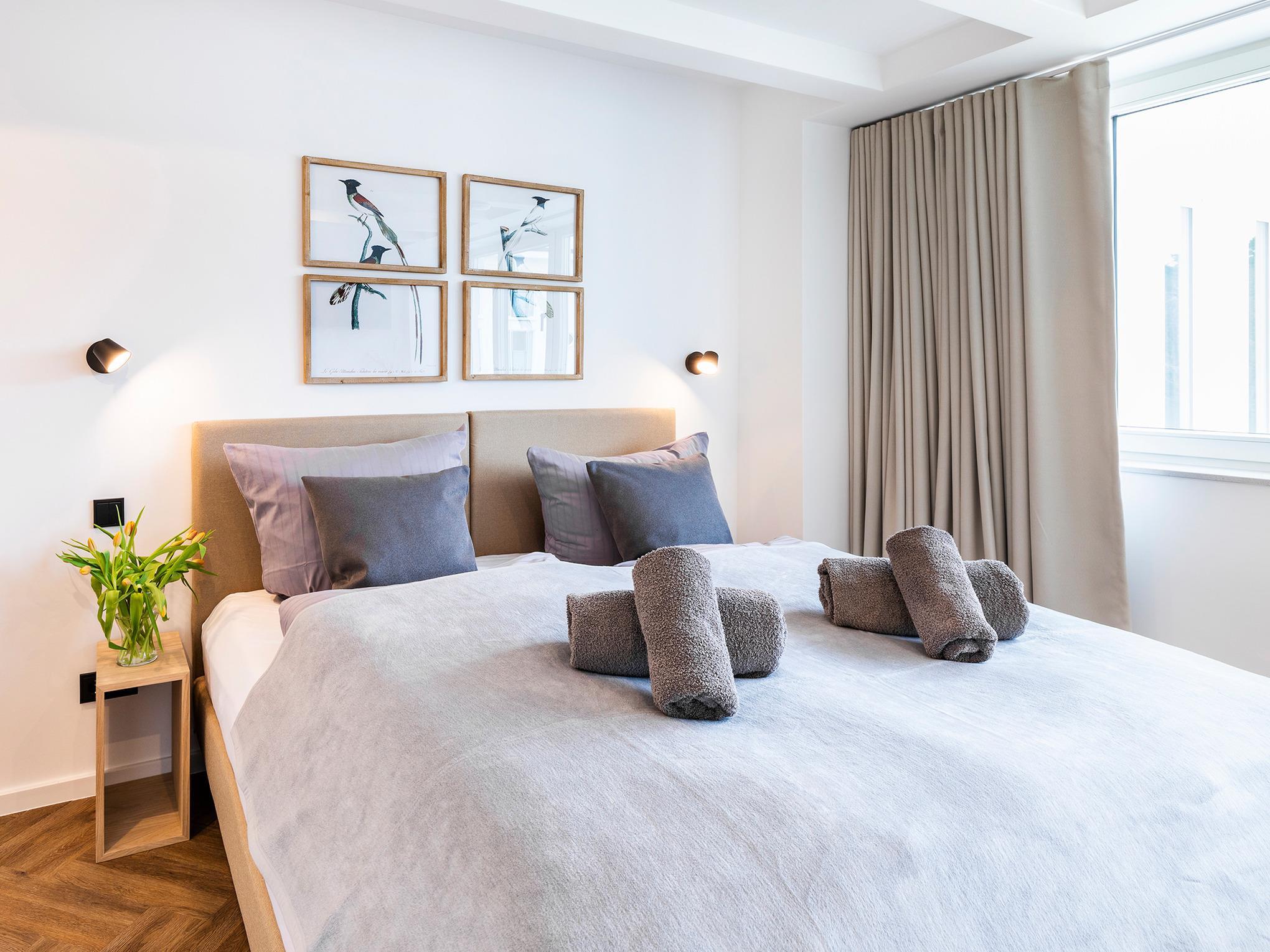 Die Einrichtung ist stilvoll hochwertig und in hellen Sandtönen gehalten.
