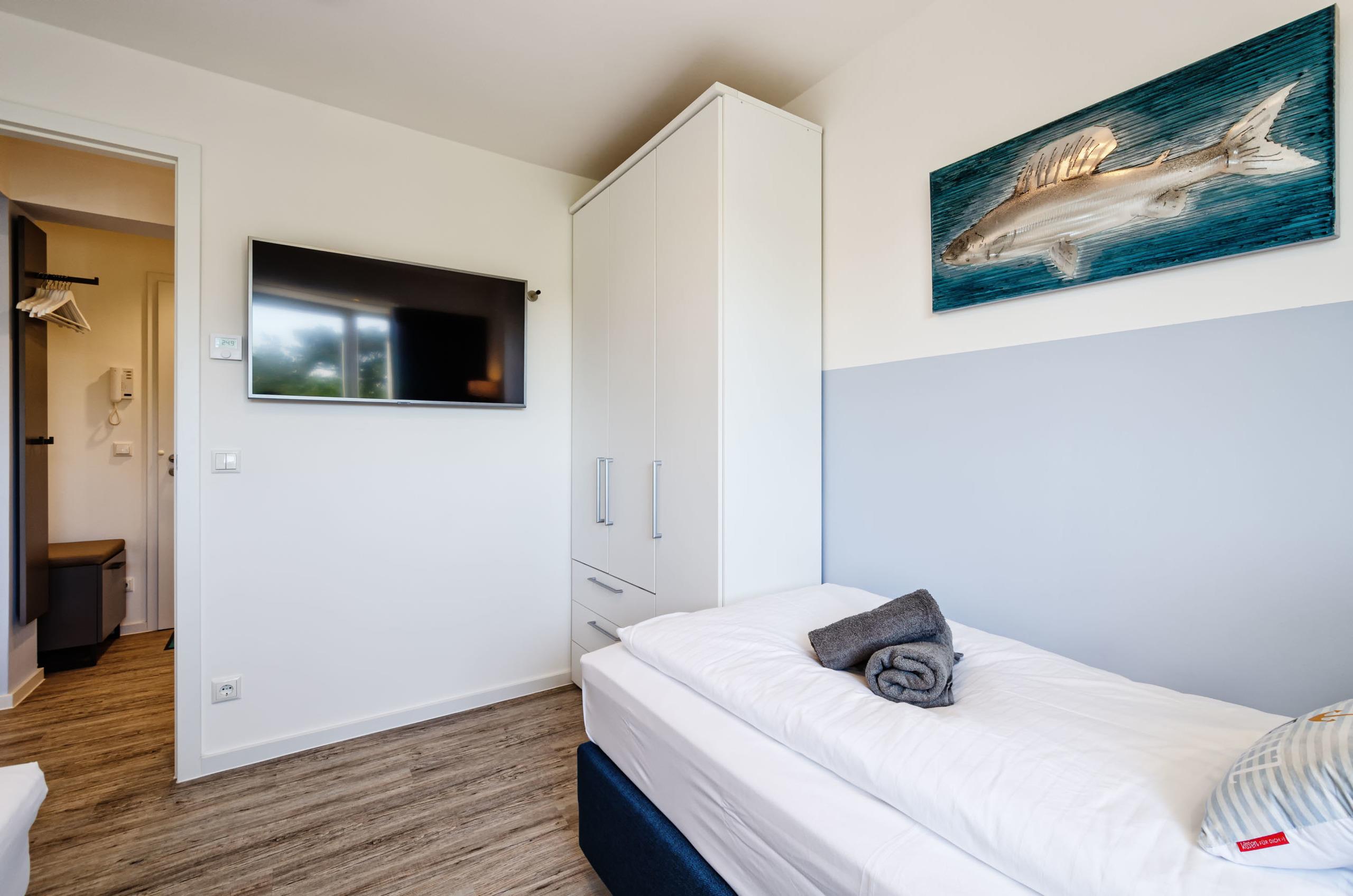 • Schlafzimmer 2: Zwei Boxspring-Einzelbetten (je 90?×?200?cm), Smart-TV, Kleiderschrank