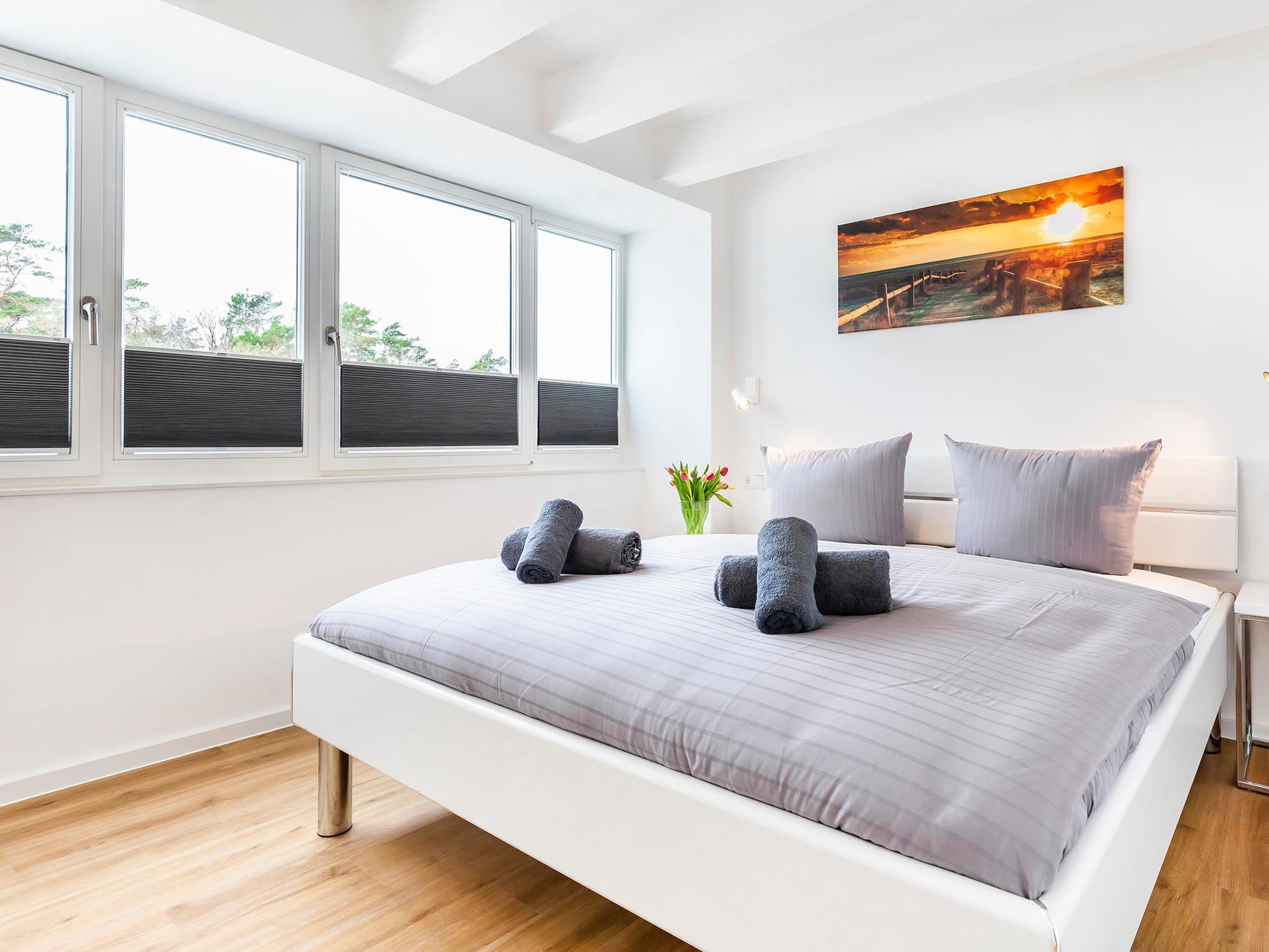 Moderne Maisonette-Ferienwohnung mit Meerblick, Balkon und Sauna in Prora, nahe Strand und Hundestrand.