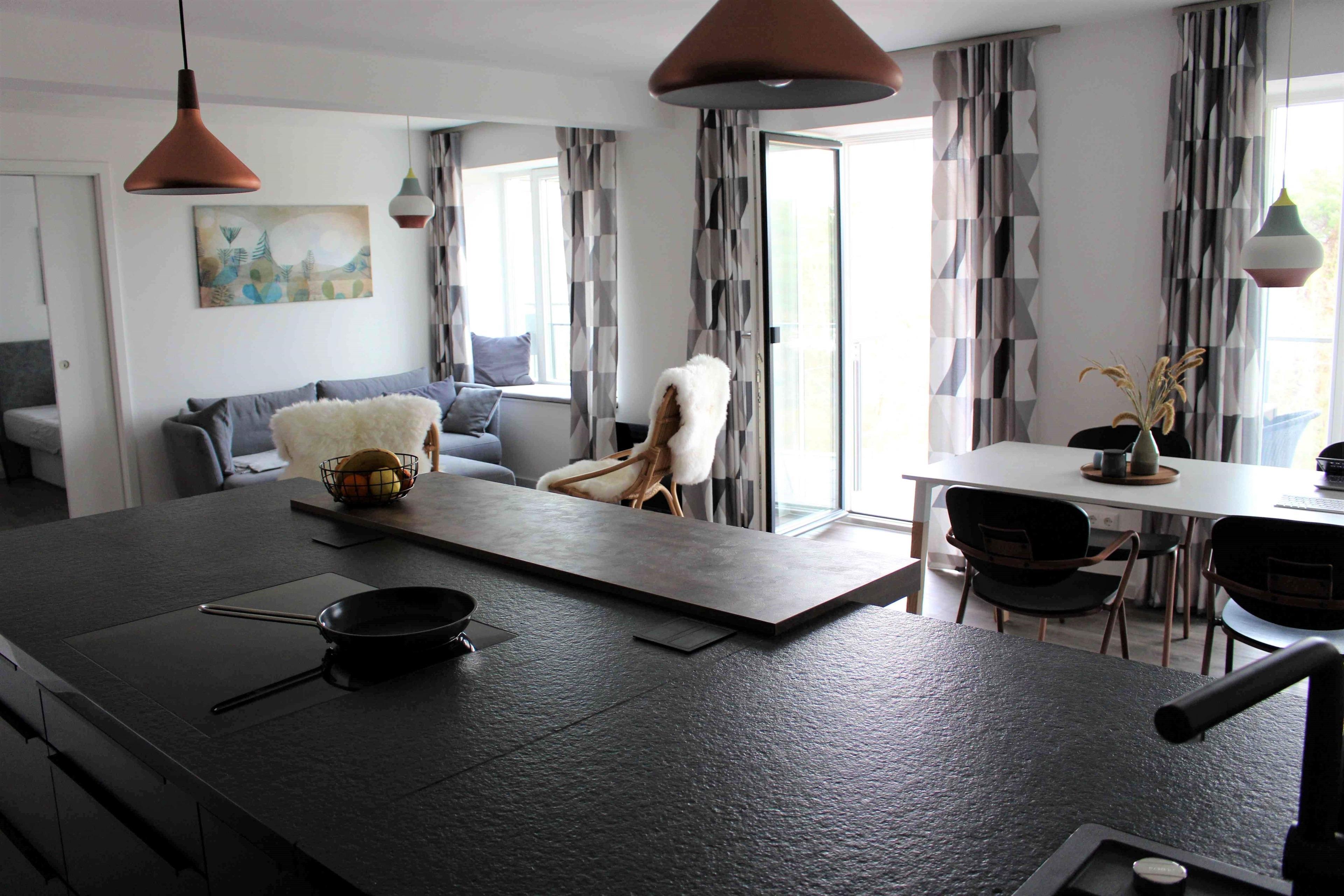Moderne Ferienwohnung in Prora mit Meerblick, Balkon, zwei Bädern und direktem Strandzugang.