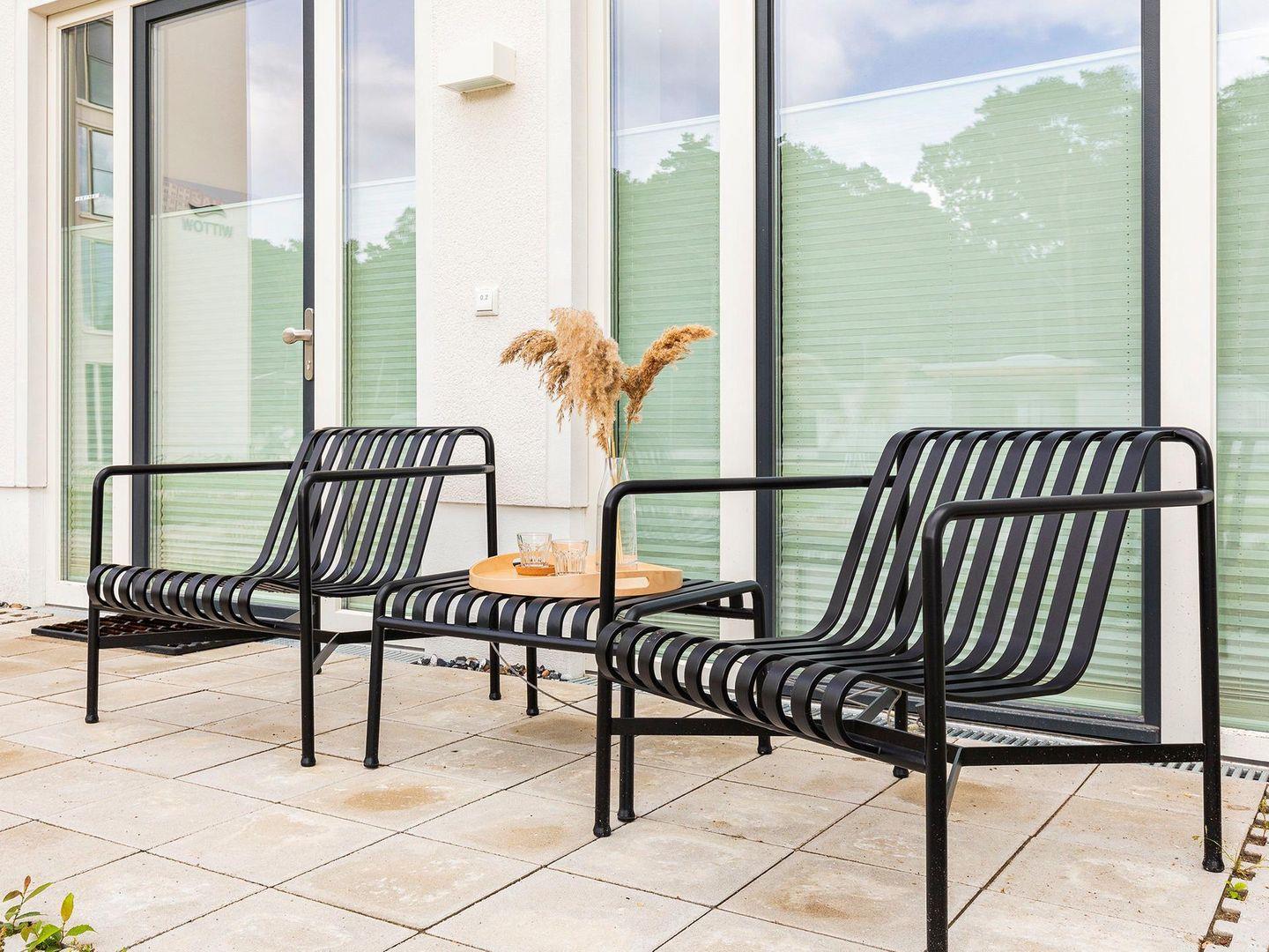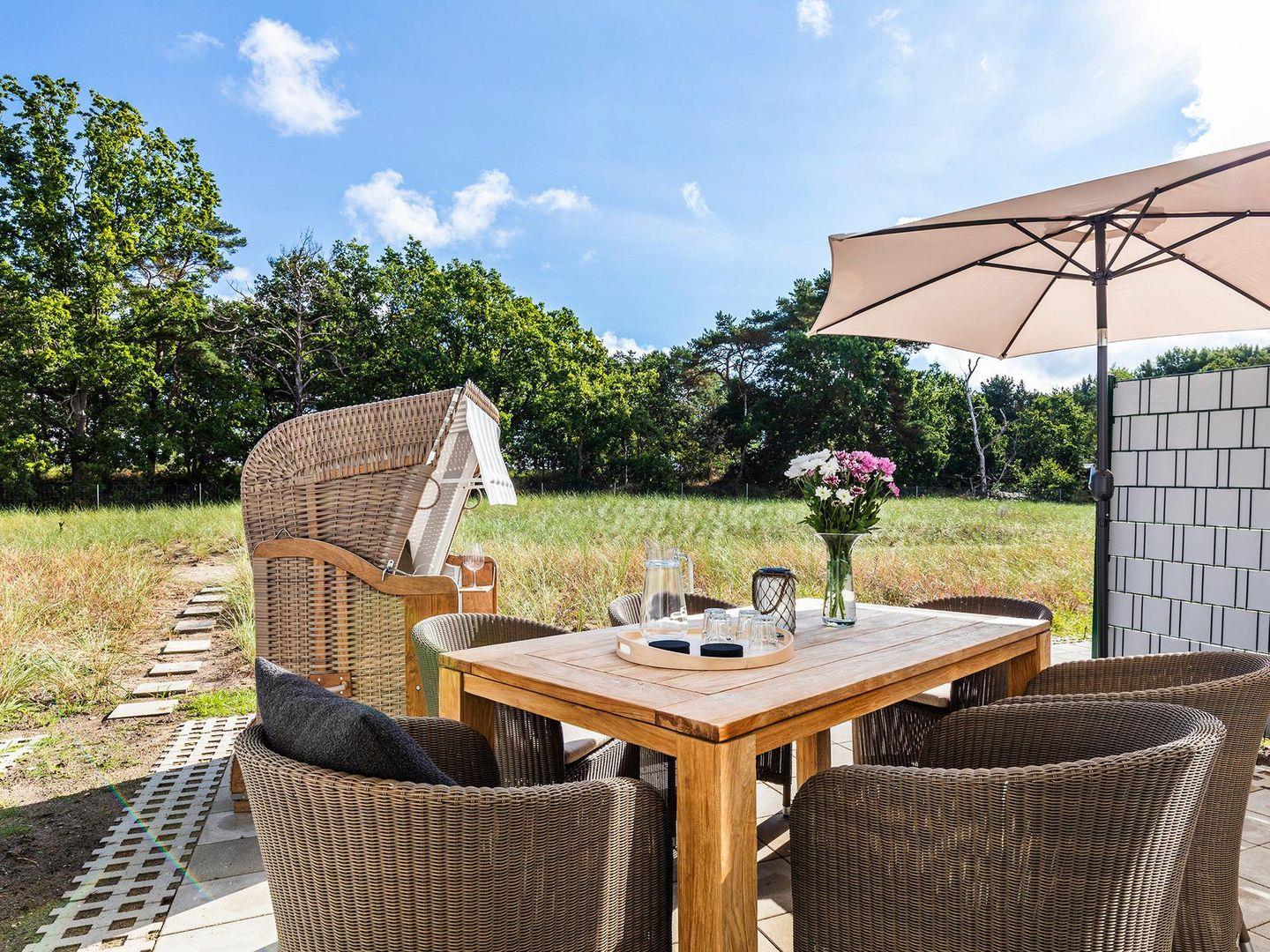 - Terrasse: Sitzmöglichkeit mit Blick auf die Dünenlandschaft, Eigener Strandkorb