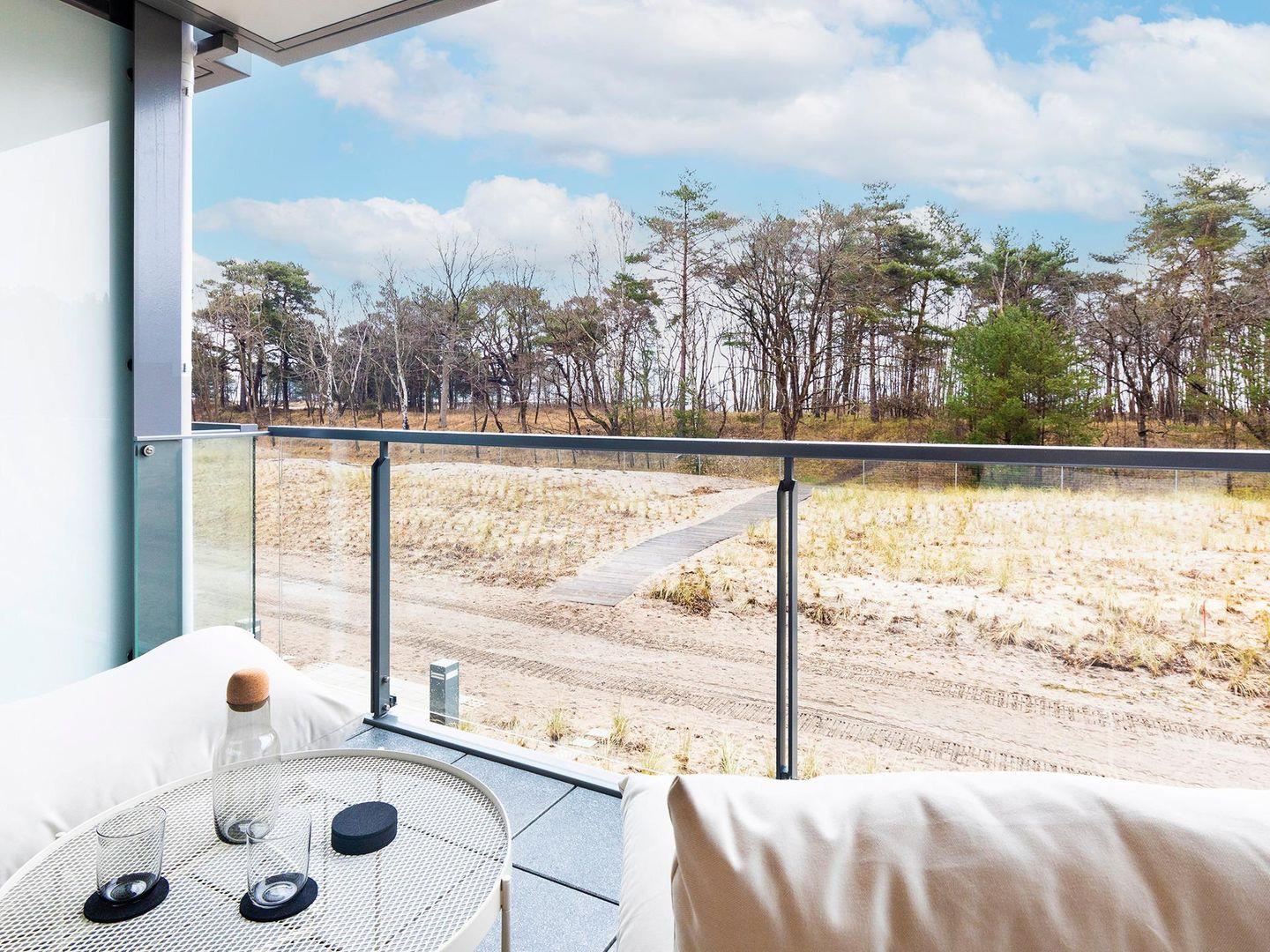 - Balkon: Sitzmöglickeit und Blick Richtung Ostsee