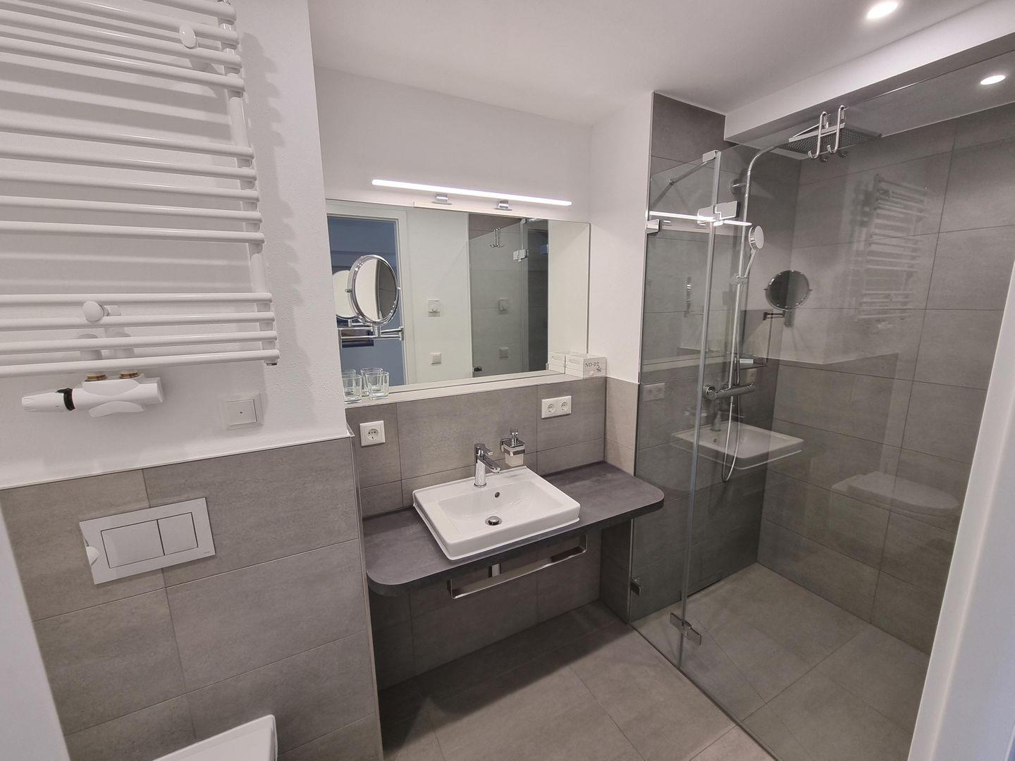 - Badezimmer 1: Sauna, Regendusche, WC, Haartrockner