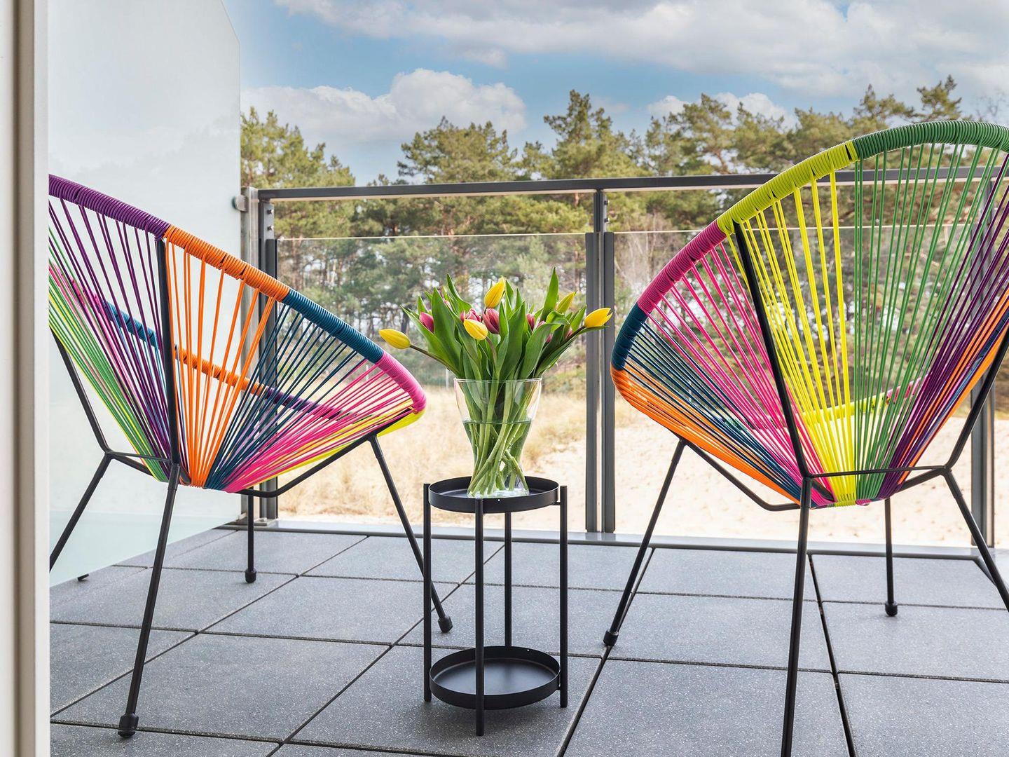 - Balkon mit Sitzmöglichkeit, Blick Richtung Meer
