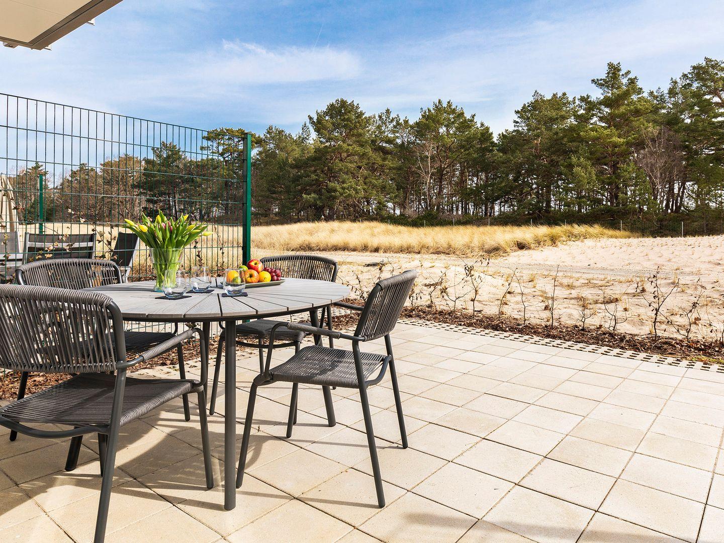 - Terrasse: Sitzmöglichkeit mit Blick auf die Dünenlandschaft
