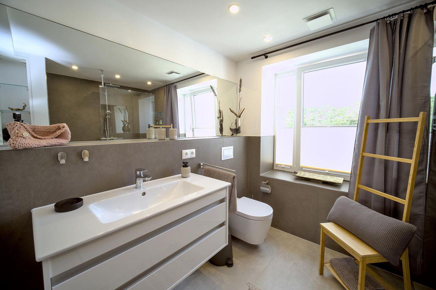 - Badezimmer 1: Dusche, Waschbecken, WC