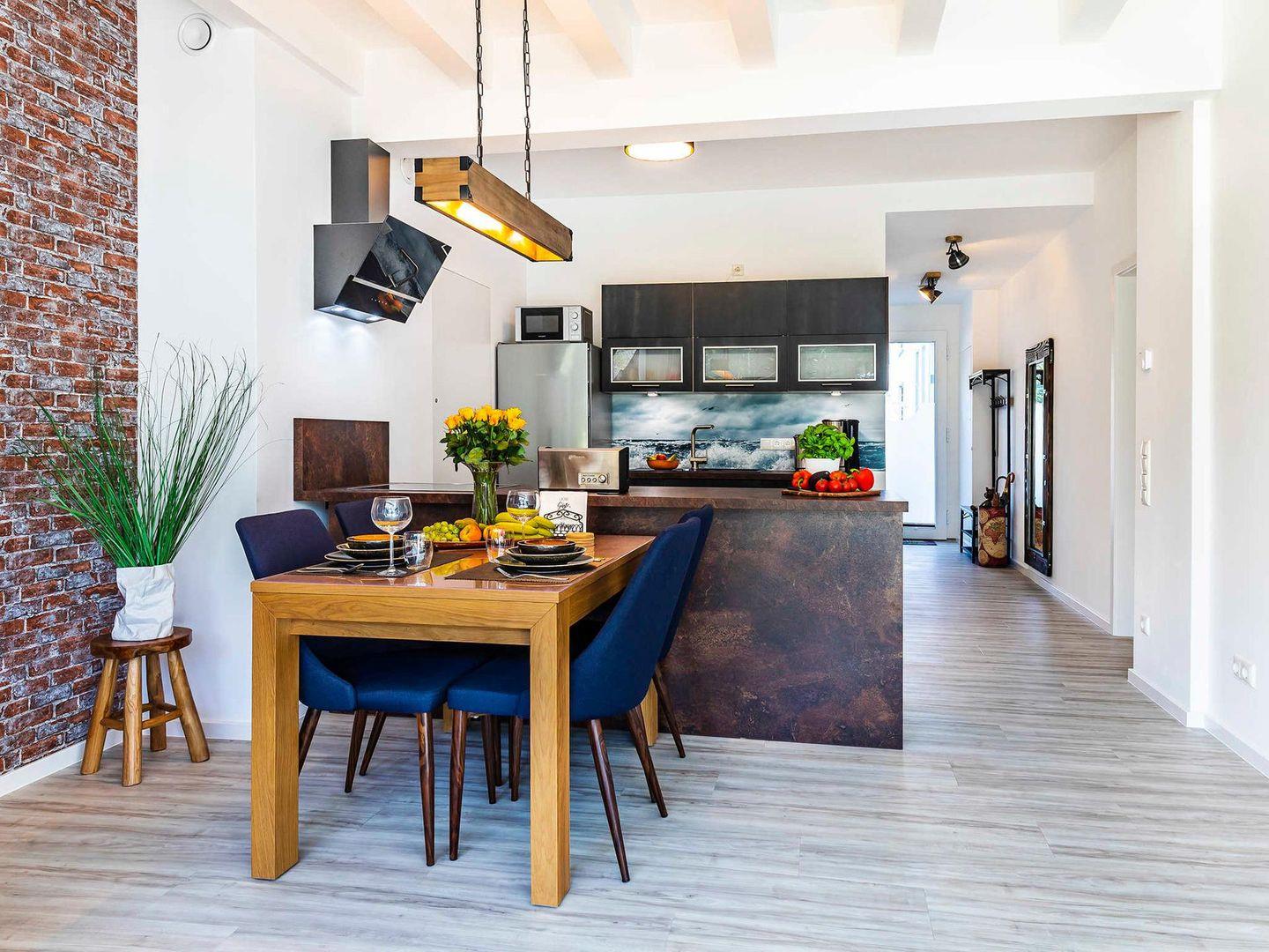 Unsere geräumige Ferienwohnung "Stubbenkammer" bietet auf 71 m² Wohnfläche Ihnen 2 Schlafzimmer, 2 vollwertig moderne Bäder (Dusche/Wanne) und einen großzügig gestalteten, offenen Wohn-/Küchenbereich. Riesige Panoramafenster mit Wald- und Dünenblick sorgen in Verbindung mit einer imposanten Deckenhöhe für ein naturnahes Wohngefühl.