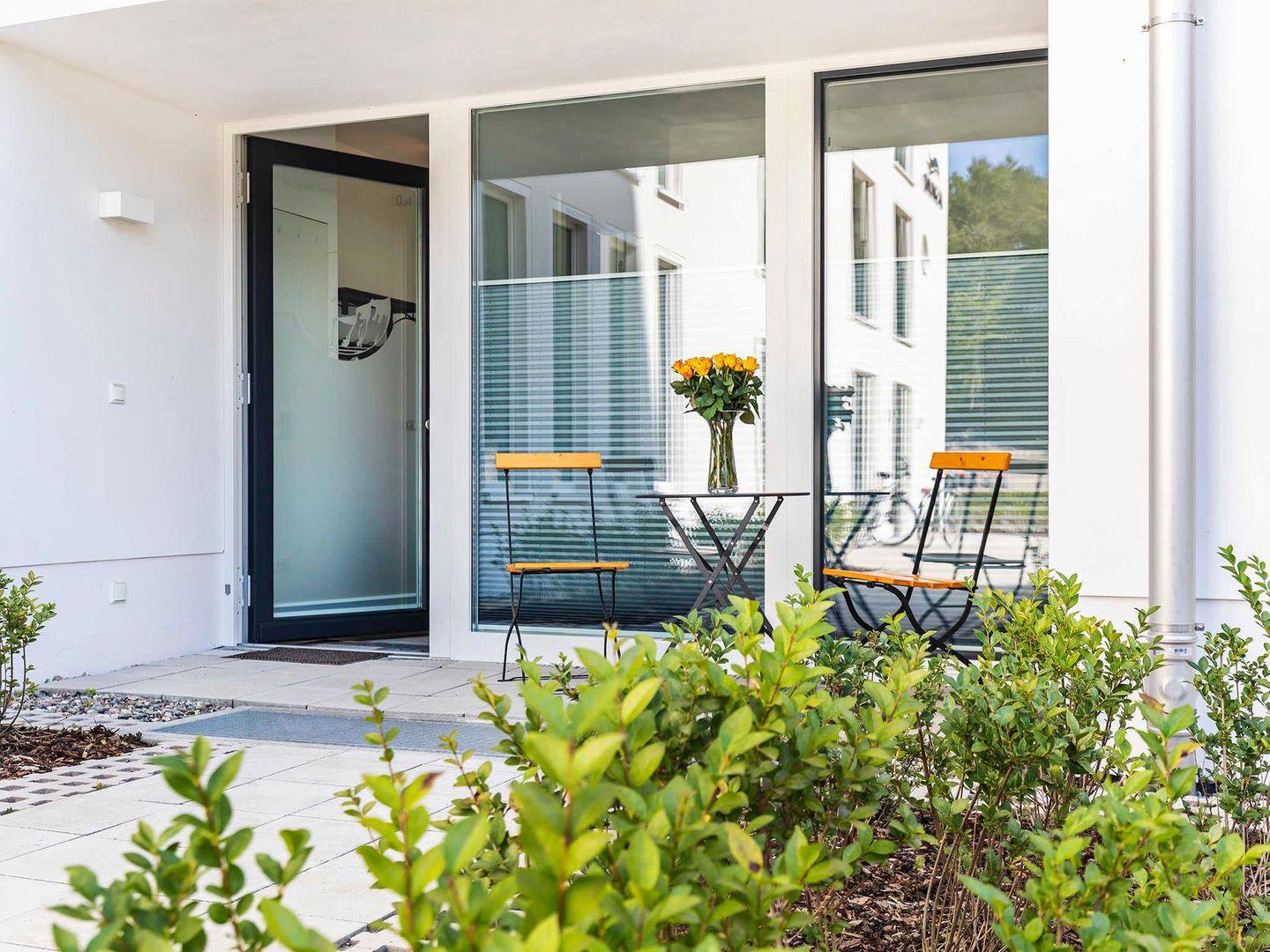 Moderne Ferienwohnung Stubbenkammer mit Terrasse und Strandkorb direkt an der Ostsee in Prora.