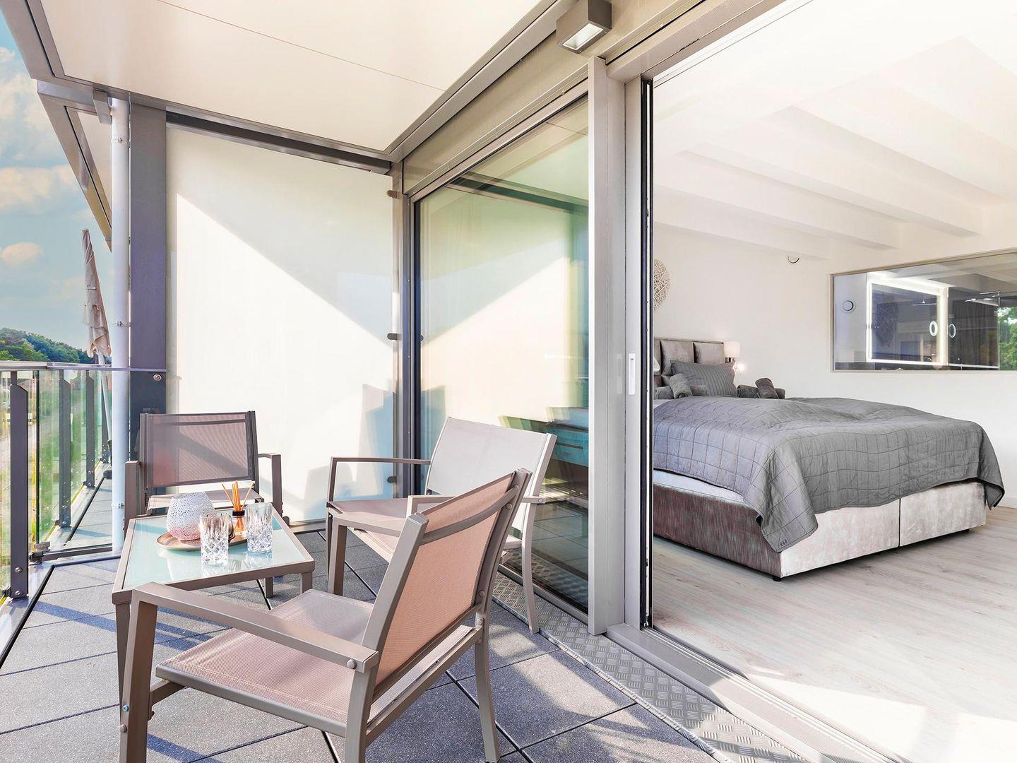 Exklusive Maisonette-Ferienwohnung mit Meerblick und zwei Balkonen in Prora, nur 50 m vom Strand entfernt.