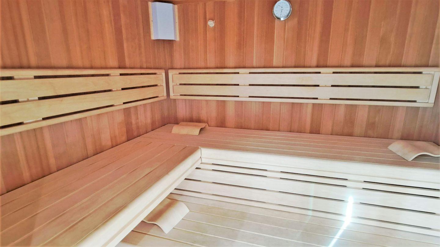 Saunafans kommen ebenfalls auf Ihre Kosten. In der Sky-Sauna im 5. OG, können Sie sich durch einen einfachen Eintrag im Reservierungsbuch, diese für sich reservieren. Tanken Sie nach den Saunagängen Frischluft auf der Dachterrasse mit Rundumblick auf die Ostsee und die umliegenden Wälder und entspannen Sie in den Ruheräumen oder in Ihrer Wohnung, die nur eine Etage darunter liegt.