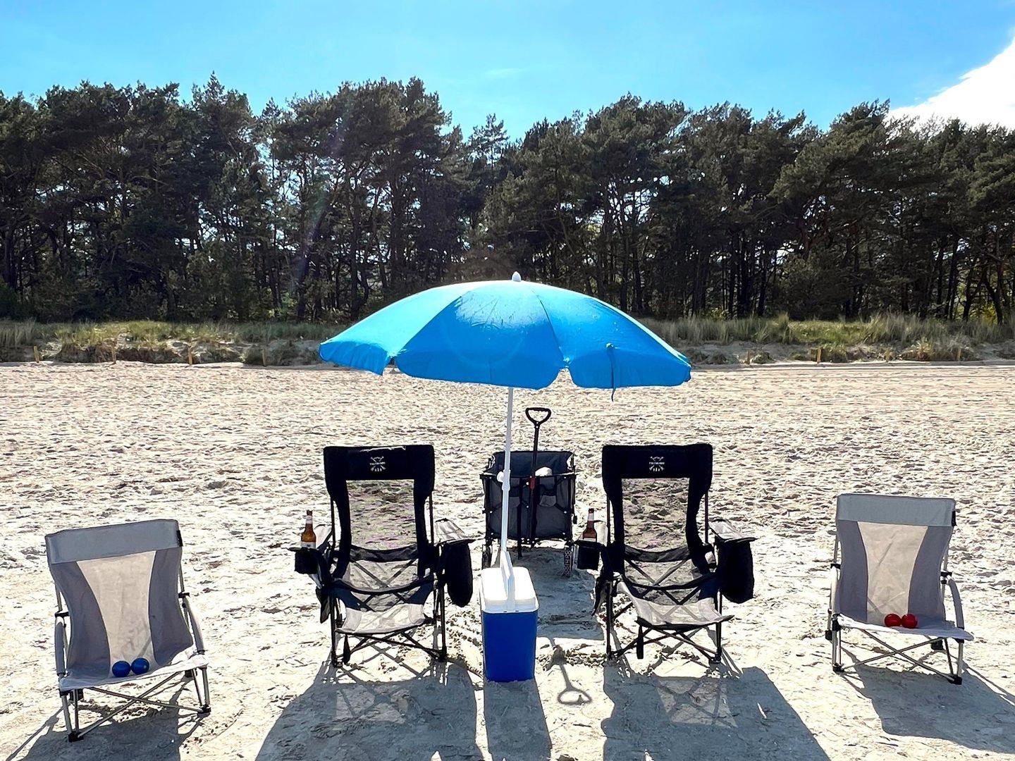 - Strandpaket mit Bollerwagen, Stühle, Sonnenschirm, Strandmuschel und -spiele, Kühlbox, Geschirr
