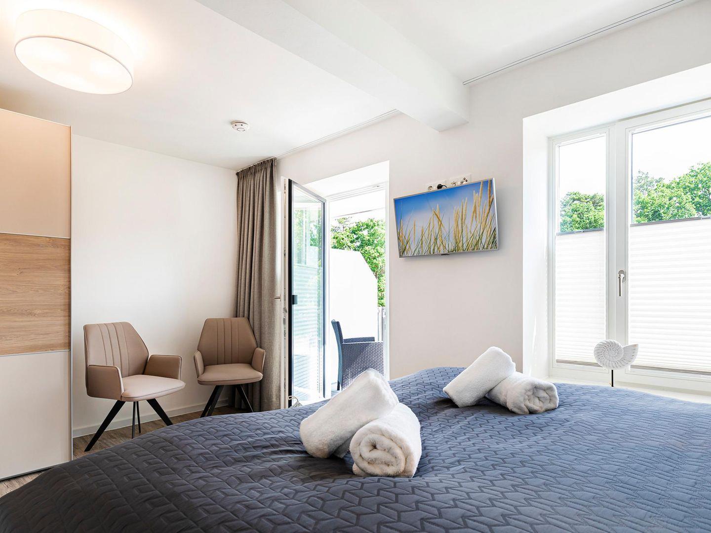 Im Haus Hiddensee erwartet dich eine helle Ferienwohnung nur wenige Schritte vom Meer entfernt. Ein Schlafzimmer mit Boxspringbett und ein zweites Zimmer mit zwei Einzelbetten bieten Raum für Erholung, der Wohnbereich führt auf die Terrasse mit Strandkorb. Eine separate Küche, warme Böden, WLAN und die eigene Sauna schenken Komfort und Ruhe. Ein Parkplatz ist inklusive, der Strandzugang liegt direkt am Haus.
