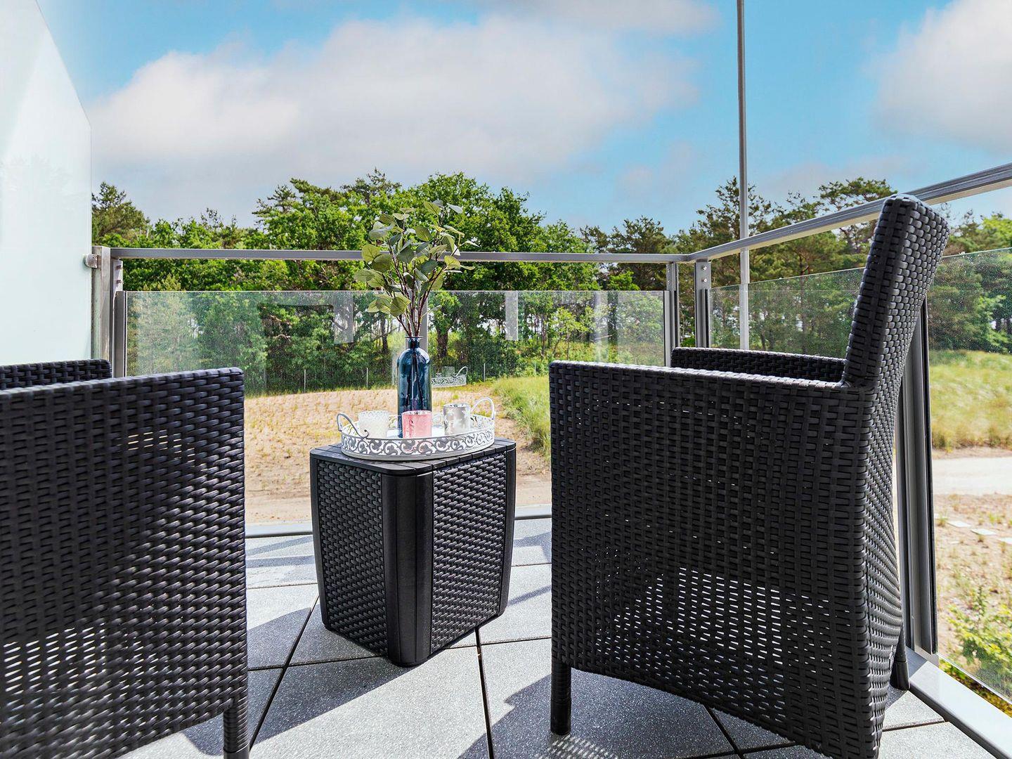 Bei sommerlichen Temperaturen genießen Sie gemütliche Stunden auf der Terrasse, ausgestattet mit einem E-Grill, Strandkorb, Sitzgruppe und Sonnenschirm, oder Sie nehmen nach einem schönen Tag am Meer einen Sundowner auf dem Balkon mit Blick auf die Ostsee. Egal bei welchem Wetter, diese Ferienwohnung bietet Ihnen jederzeit einen Lieblingsplatz und einen entspannten Rügen-Urlaub. Diese Wohnung ist eine Nichtraucher-Wohnung, Haustiere müssen draußen bleiben. Ein Pkw-Stellplatz befindet sich in unmittelbarer Nähe.