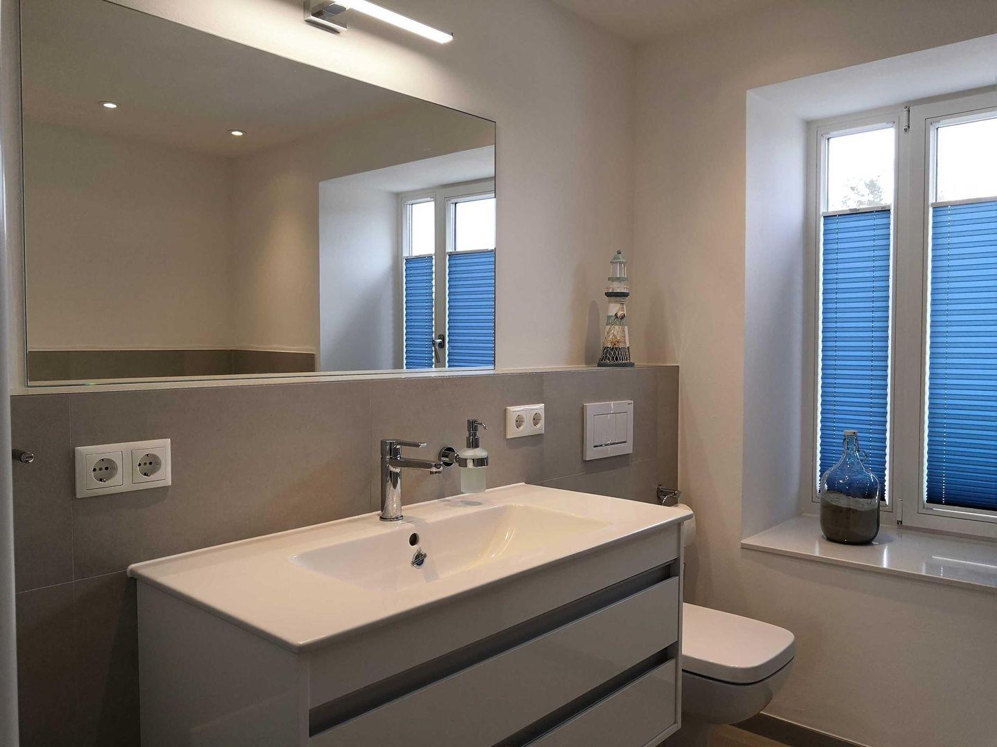 Gleich zwei moderne Badezimmer sorgen dafür, dass Sie stressfrei entspannen können und die Wahl zwischen Dusche oder Badewanne haben. Auf den beheizten Fensterbänken lässt es sich gemütlich Ausschau halten oder in den bereitgestellten Bücher lesen oder einfach nur entspannen. Parken können Sie vor dem Haus auf dem hauseigenen Parkplatz und gelangen mit dem Aufzug bequem in die dritte Etage.