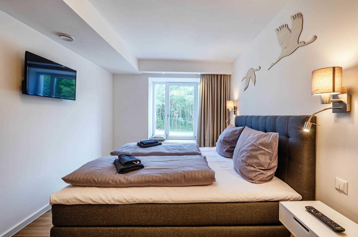 - Schlafzimmer 2: Doppelbett (180x200), TV, Schreibtisch