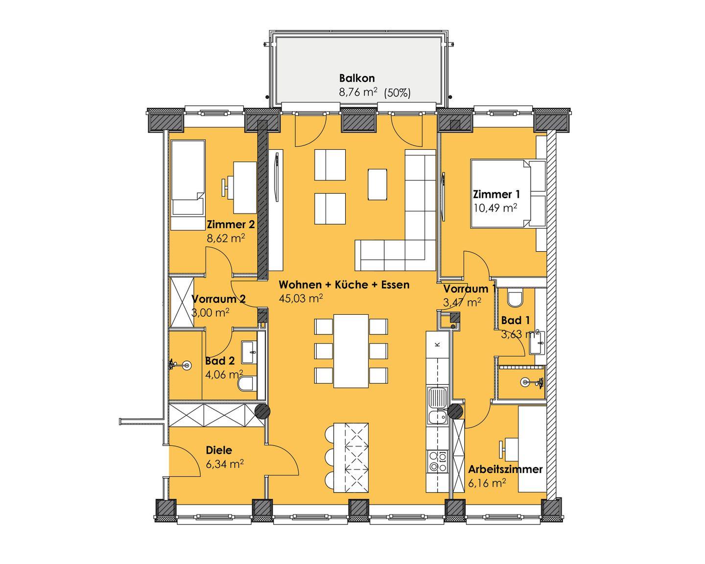 - Gemeinschafssauna: Sky-Sauna 5.OG (mit dazu gehöriger Rooftop-Terrasse)