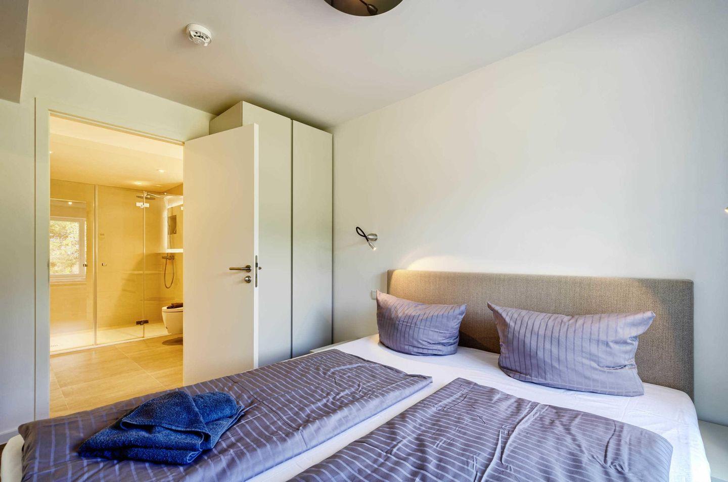 - Schlafzimmer 1: Doppelbett (180x200), Kleiderschrank, TV