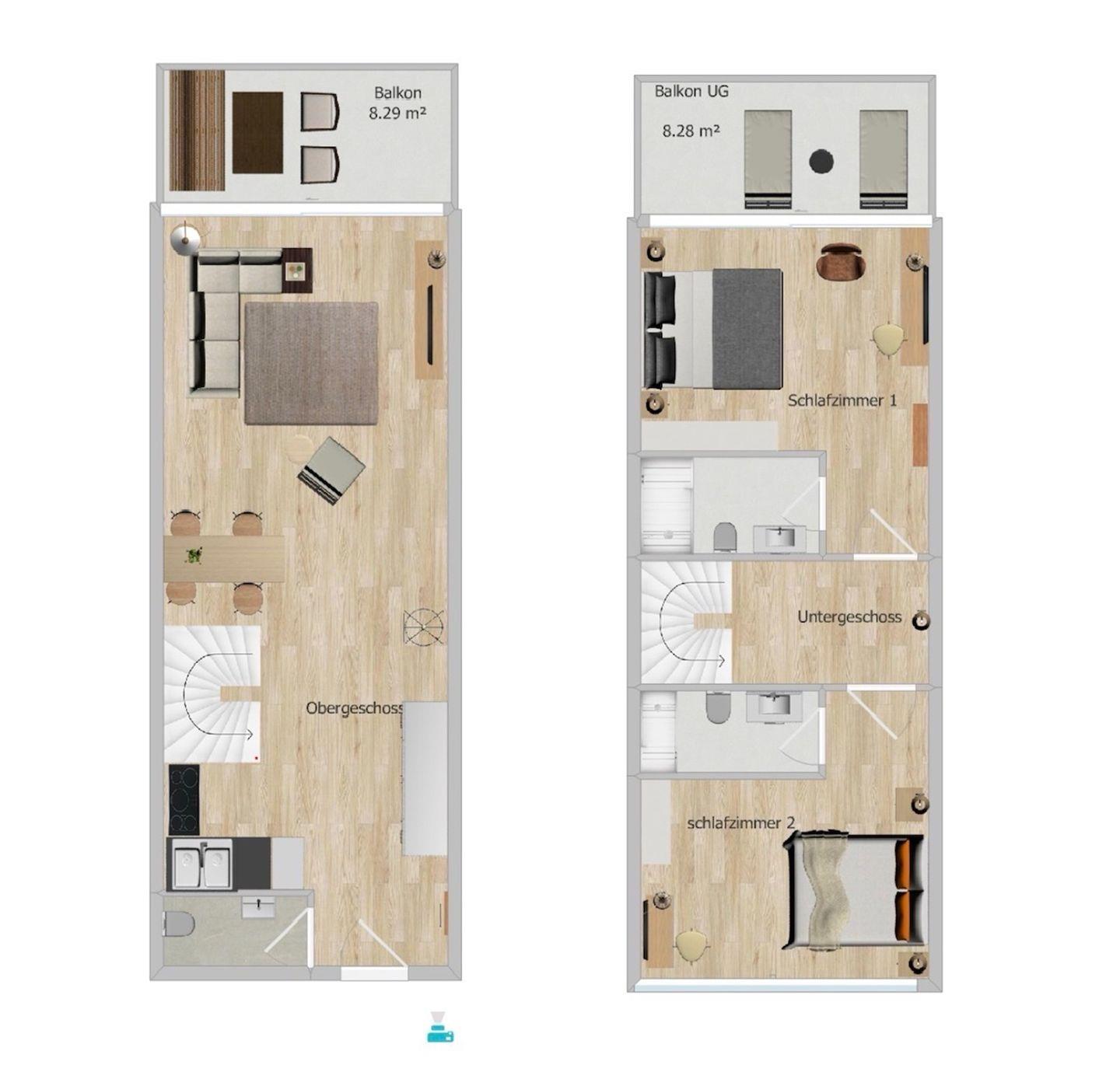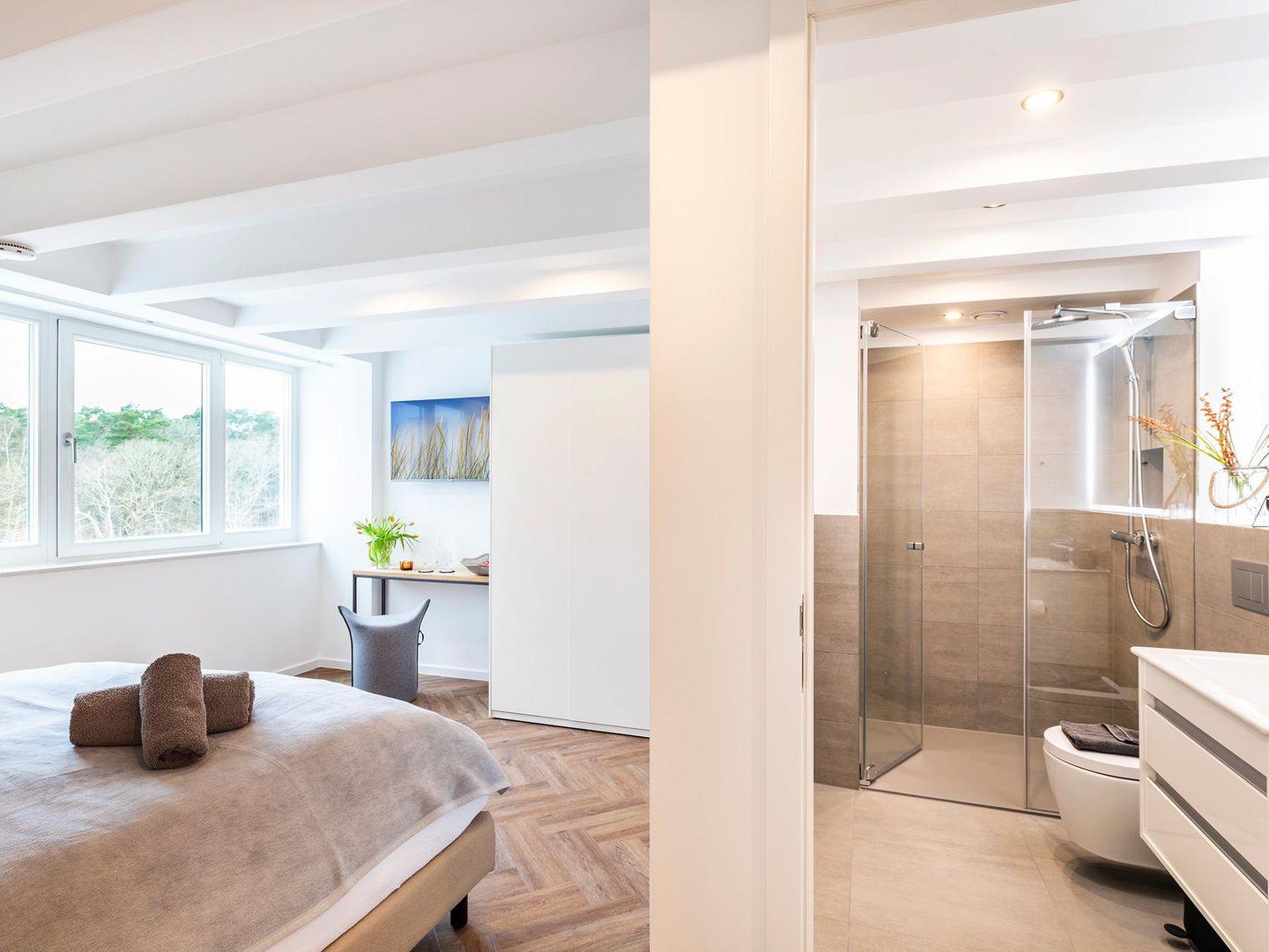2 Schlafzimmer in der unteren Etage mit angrenzenden Badezimmern sowie ein Gäste-WC bieten ausreichend Platz für bis zu 4 Personen.