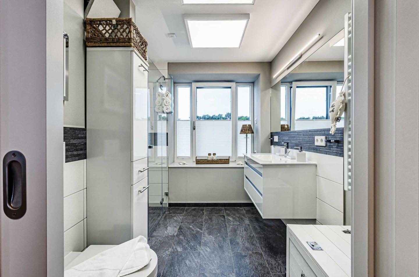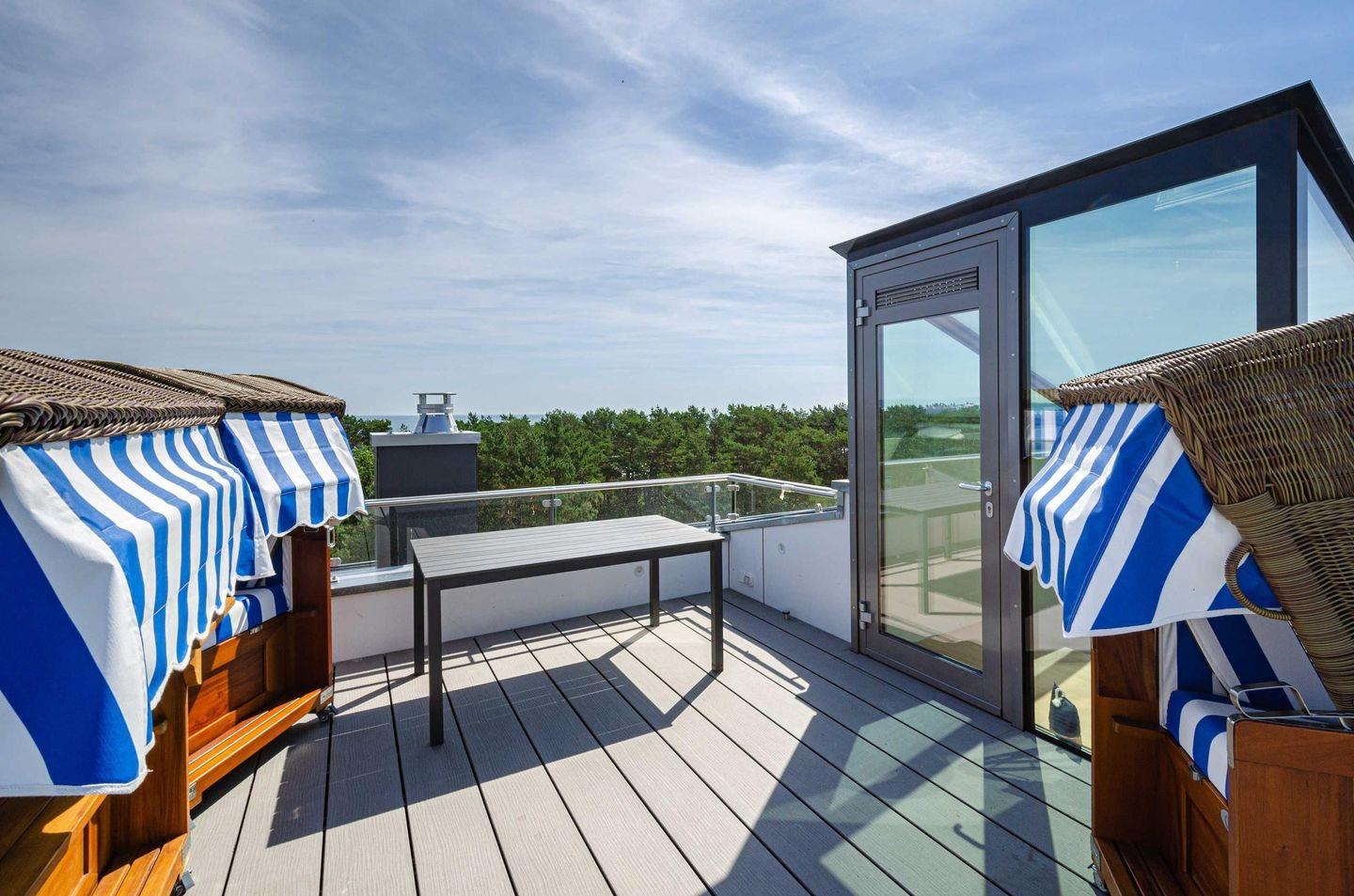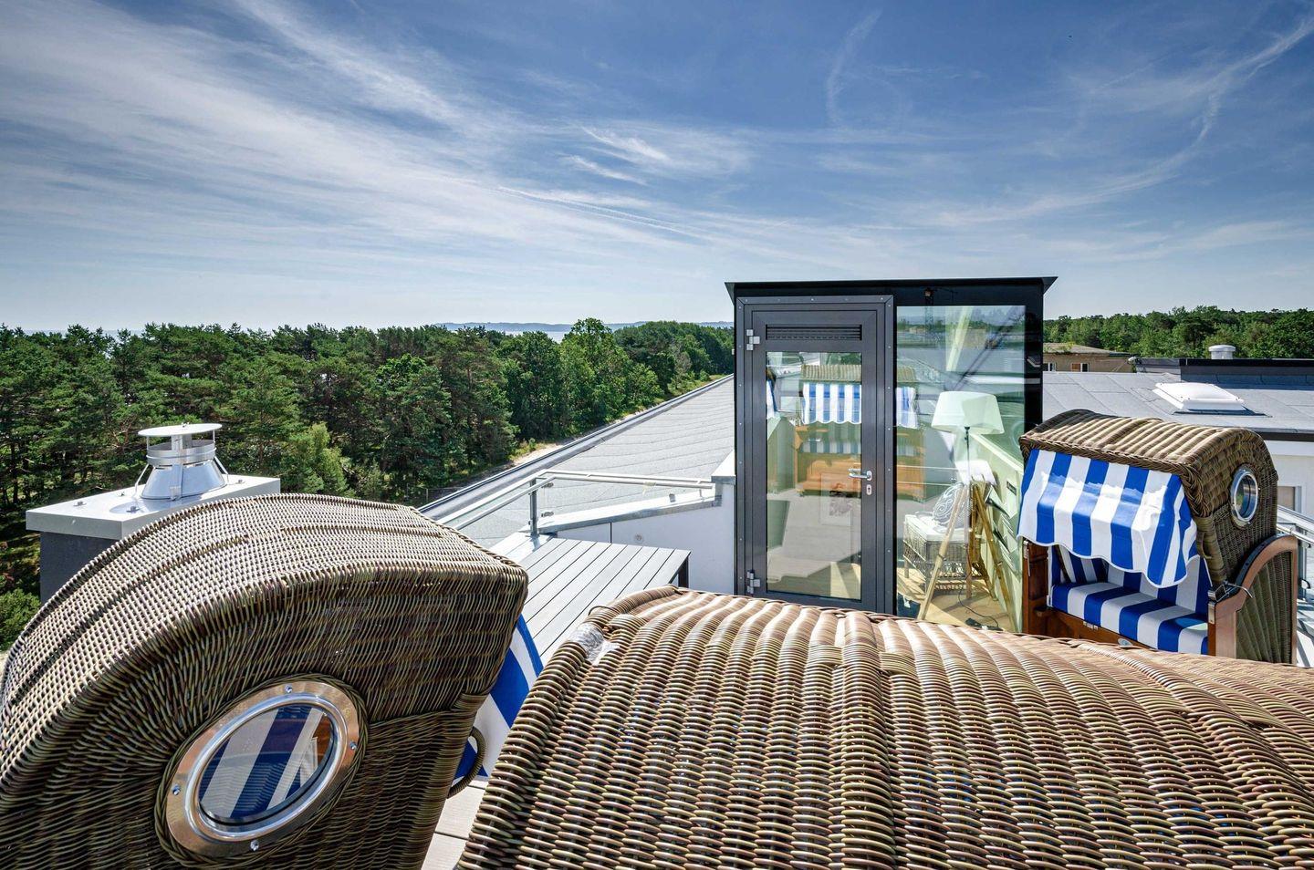 Die 95 m² große Ferienwohnung Sealion in Prora bietet Balkon, Kamin, Sky-Sauna und liegt nur 50 m vom Strand entfernt.