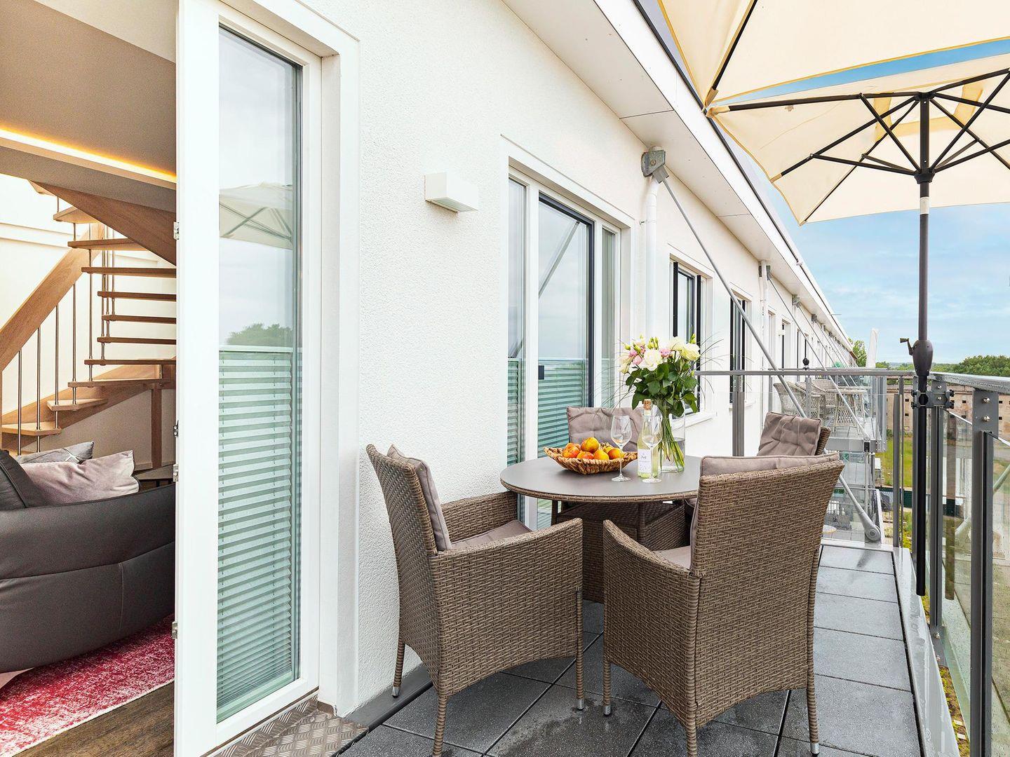 FeWo Sky Lodge: 91 m² FeWo im Dachgeschoss mit Sauna, Balkon & Meerblick
