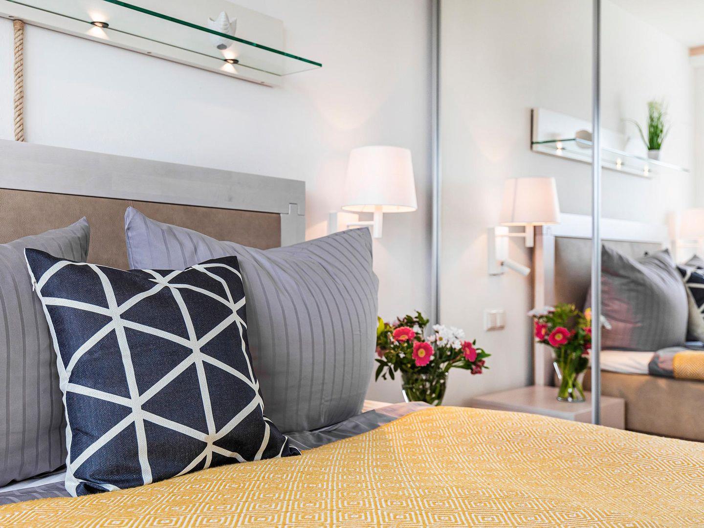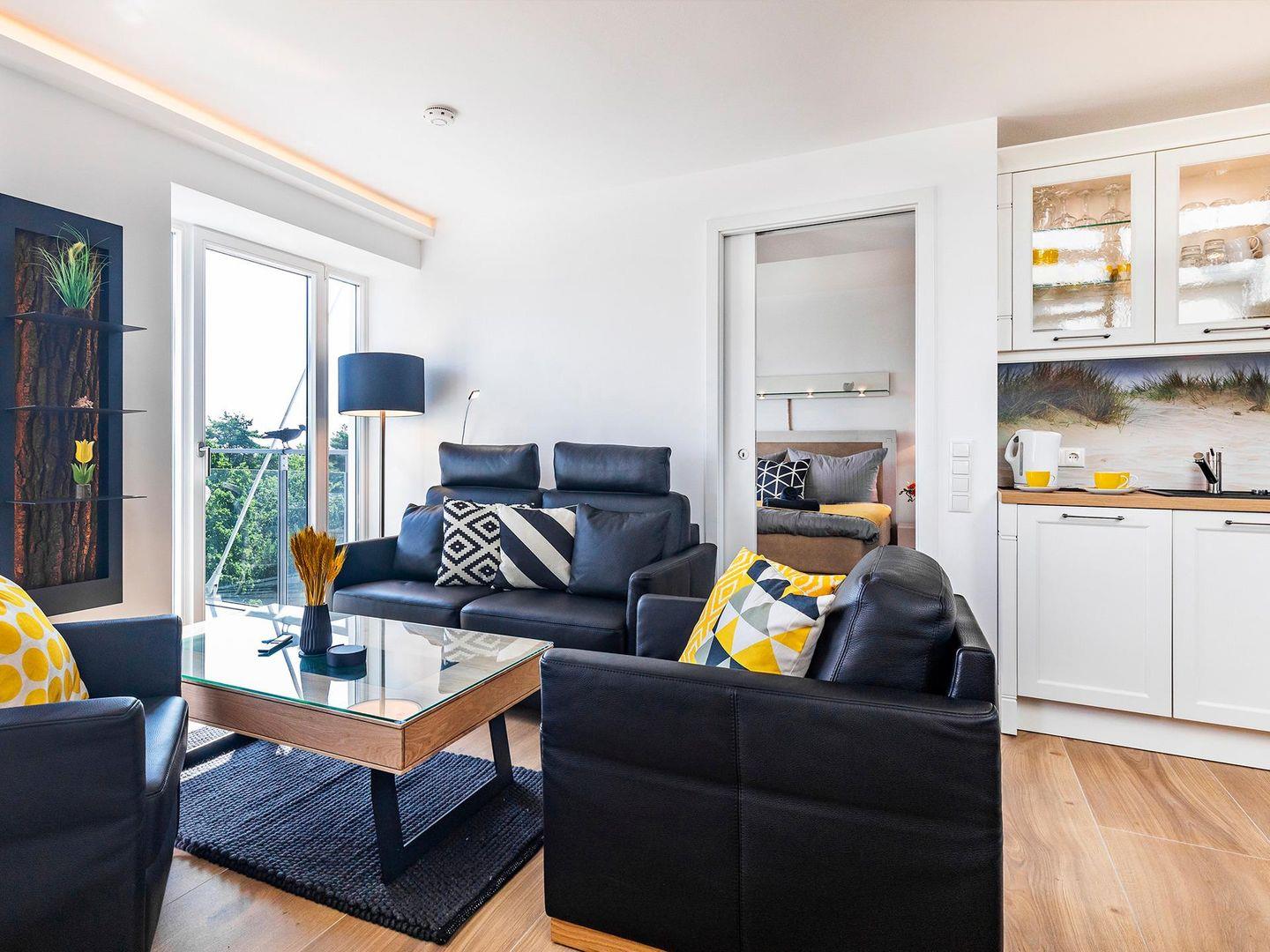 In der gemütlichen Wohnung, mit W-Lan und Ostseeblick, stehen Ihnen für Ihren Schlafkomfort zwei Schlafzimmer mit jeweils einem Doppelbett für 2 Personen zur Verfügung. Der zentrale Wohn-Essbereich bietet ausreichend Platz für bis zu sechs Personen am großen Esstisch sowie auf der bequemen Couch. Der meerseitige Balkon verfügt über einen Tisch und 4 Stühle, die ebenfalls zum Verweilen oder gemeinsamen Essen einladen, das Sie in der vollausgestatteten Küche selbst zubereiten können.