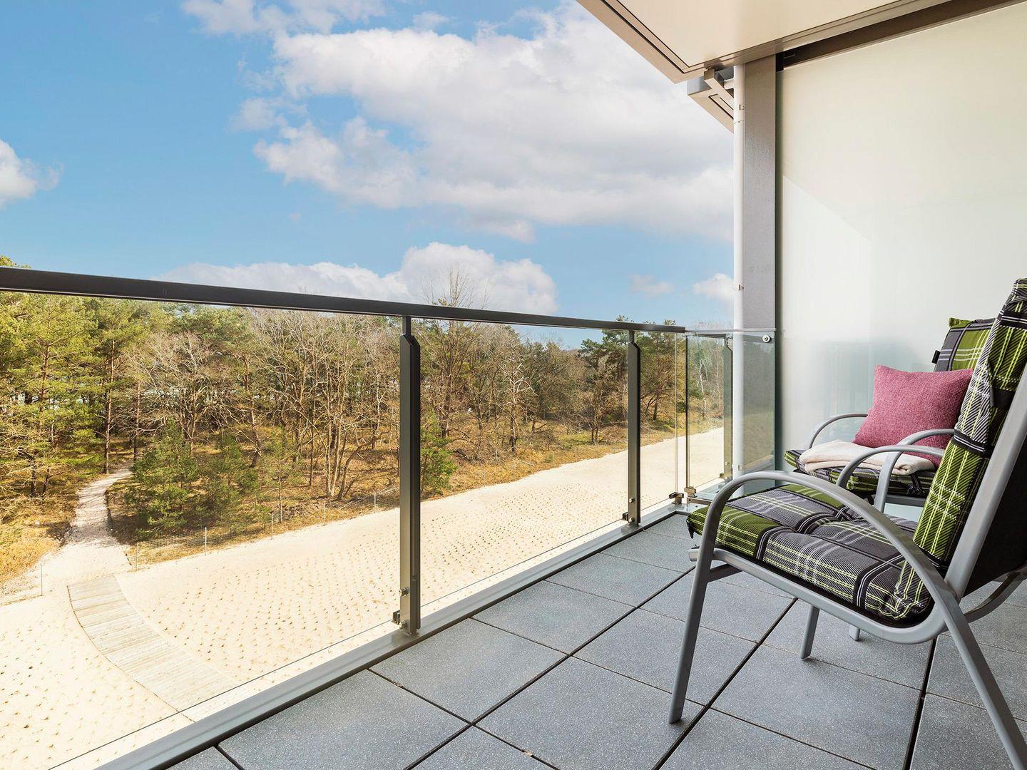 - Balkon1: Sitzmöglichkeiten, Blick auf das Meer