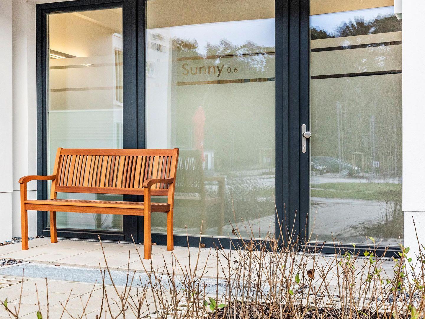 - Terrasse 1 (Ost-Ausrichtung): Sitzmöglichkeit mit Blick auf die Dünenlandschaft