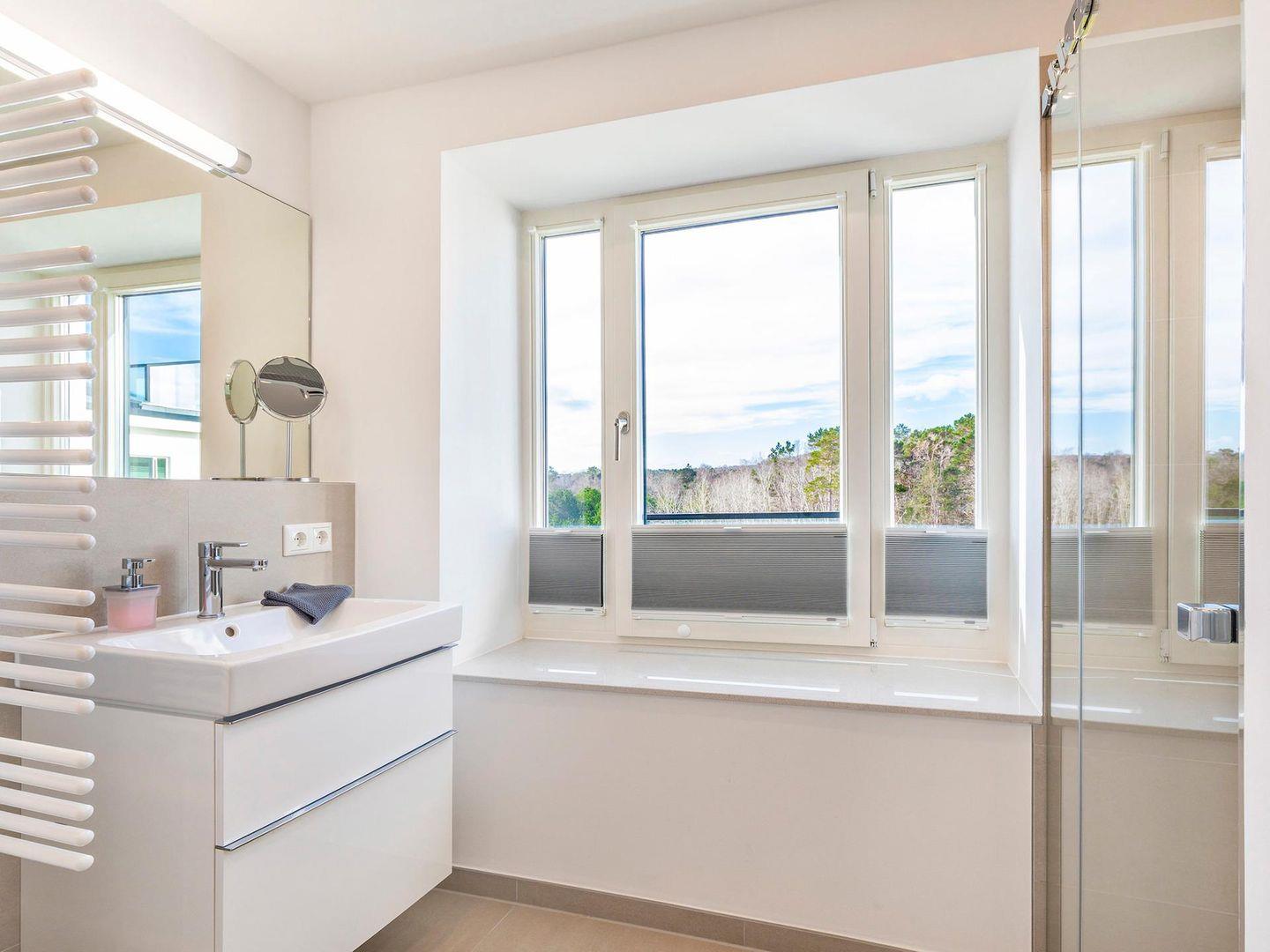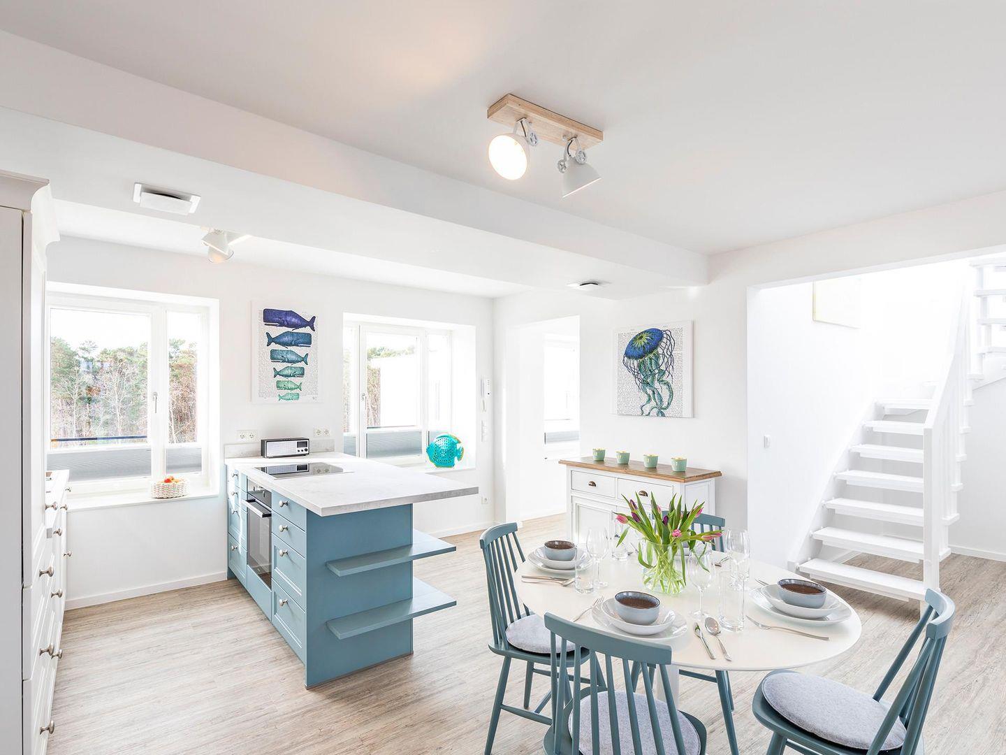 Im Haus Mönchgut erwartet dich eine helle Ferienwohnung nur 50 m vom Meer entfernt. Ein Schlafzimmer und ein Zimmer mit Etagenbett bieten Raum für ruhige Tage, der offene Wohnbereich führt auf den Balkon und weiter zur privaten Dachterrasse mit Blick über Dünen und Wasser. Zwei Bäder, warme Böden, WLAN und eine moderne Küche begleiten deinen Aufenthalt. Ein Parkplatz ist inklusive.