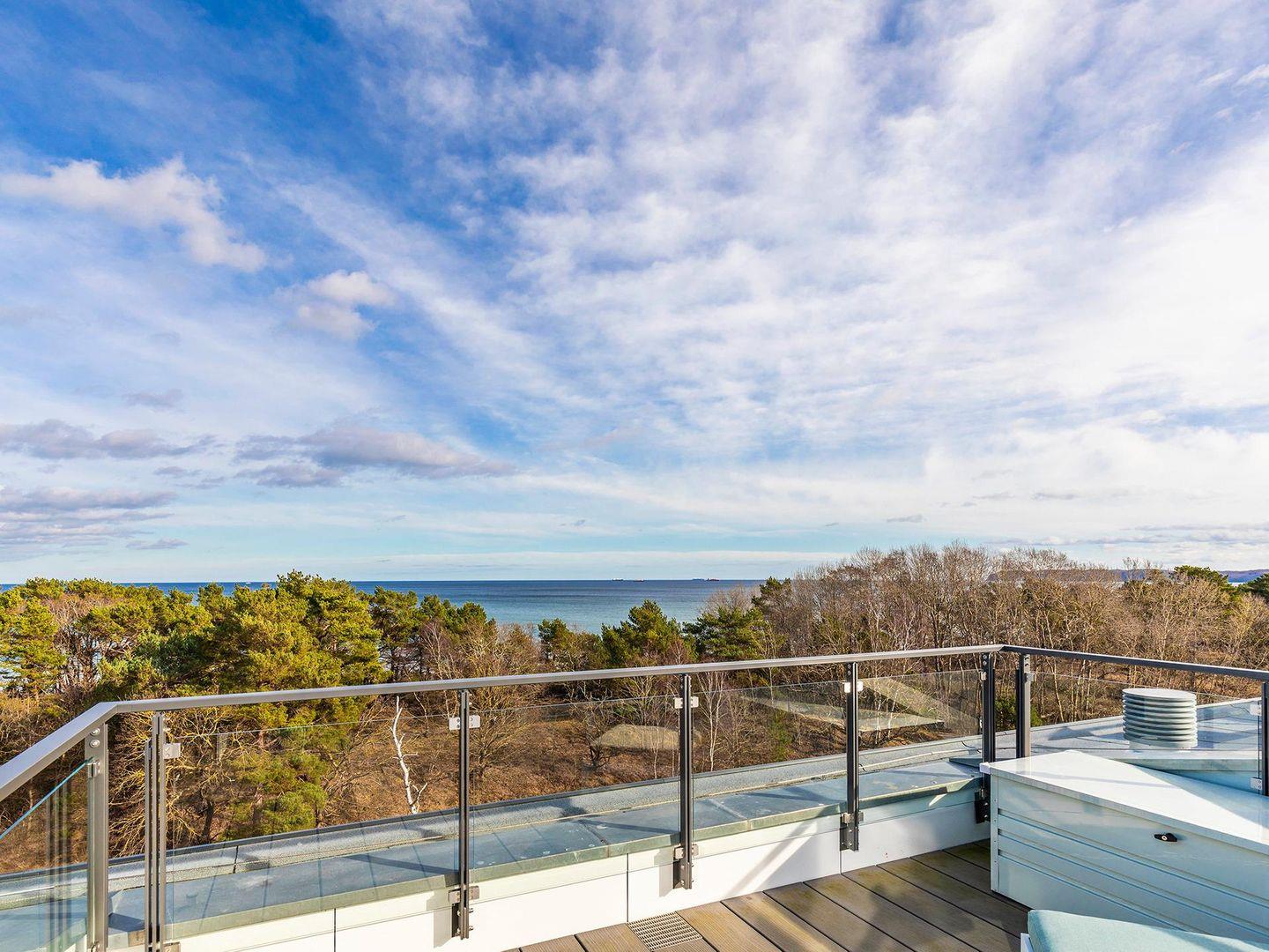 Exklusive Ferienwohnung in Binz mit privater Dachterrasse und herrlichem Meerblick, nur 50 m vom Strand entfernt.