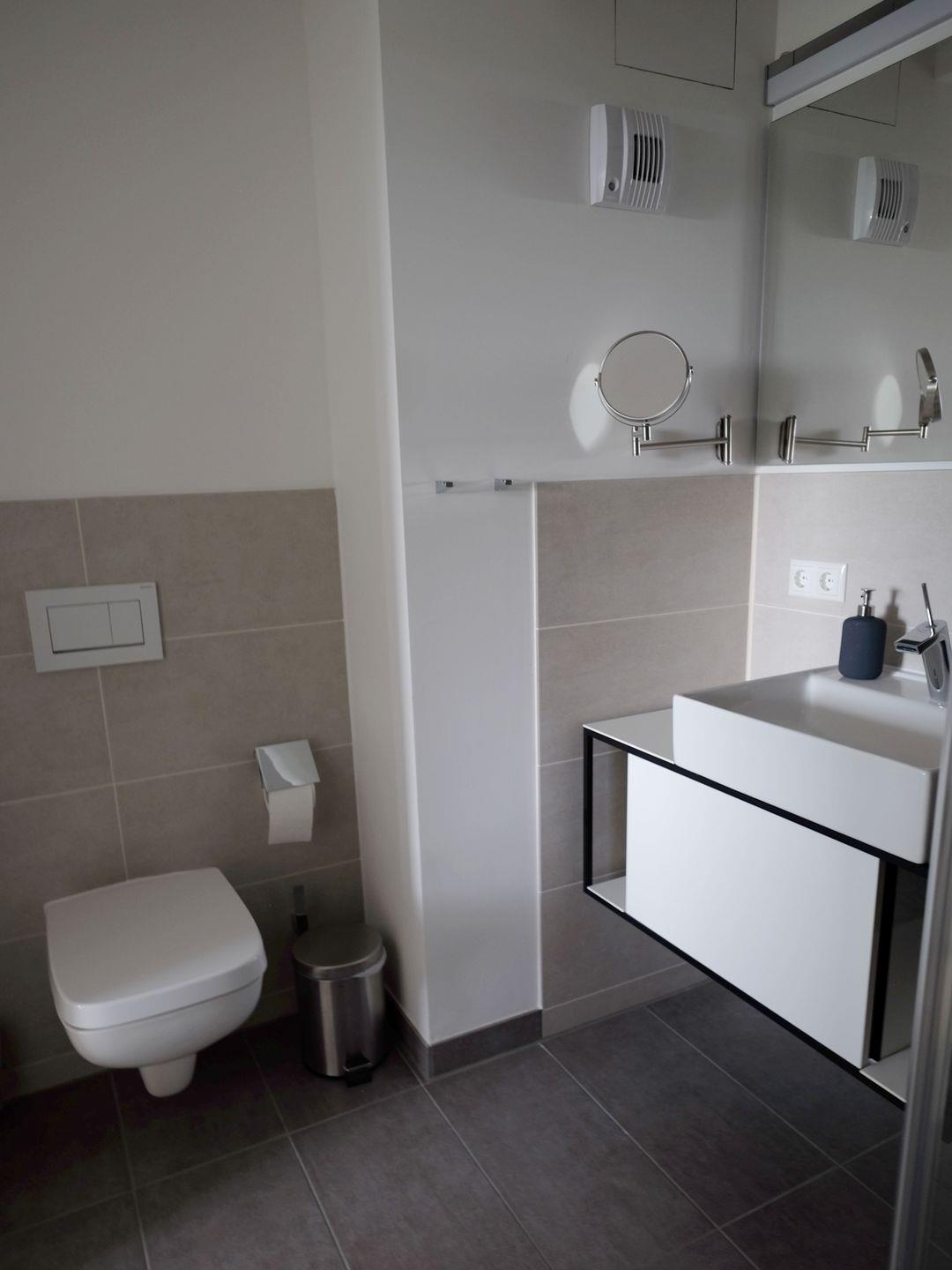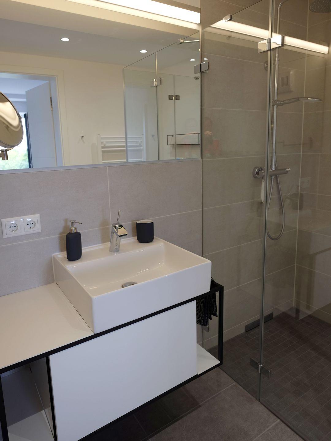 - Badezimmer 1: Regendusche, WC, Haartrockner, Kosmetikspiegel