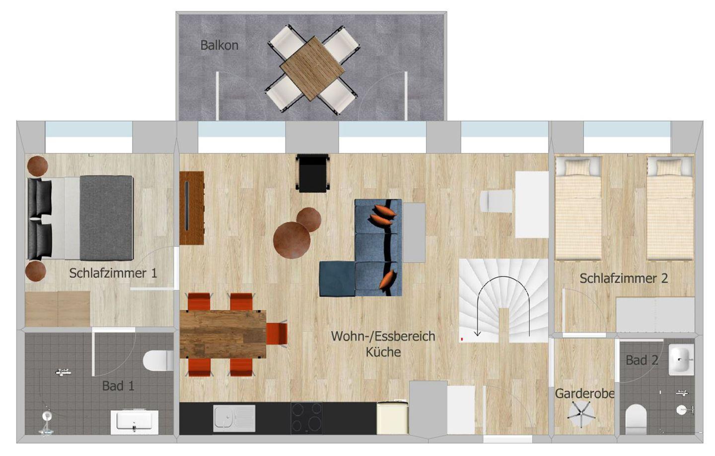 - Balkon mit Sitzmöglichkeiten