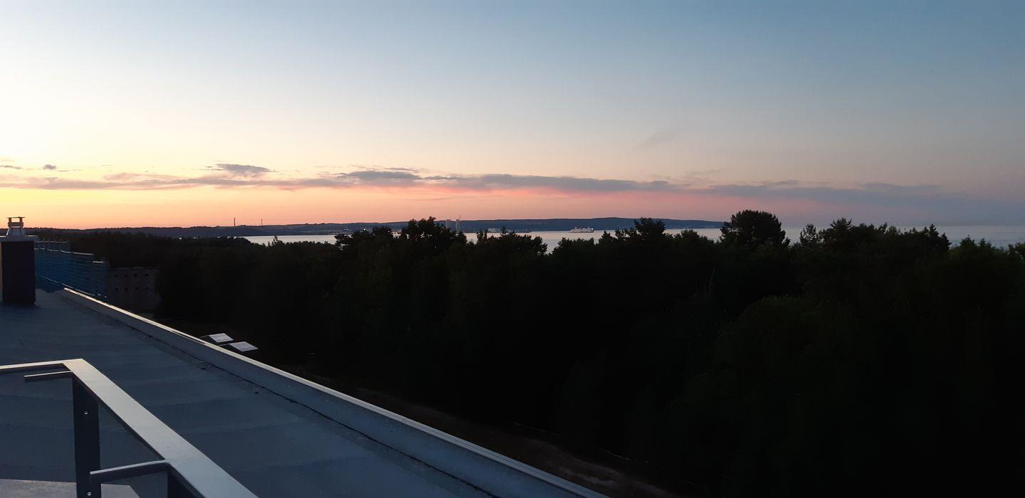 Komfortable Ferienwohnung Albatros mit Meerblick, zwei Bädern, Balkon und privater Dachterrasse in Prora, 50 m vom Strand entfernt.