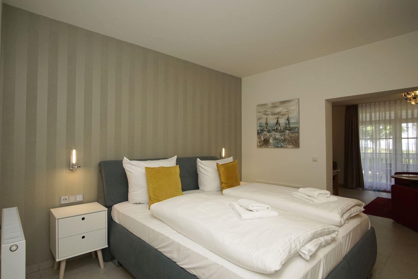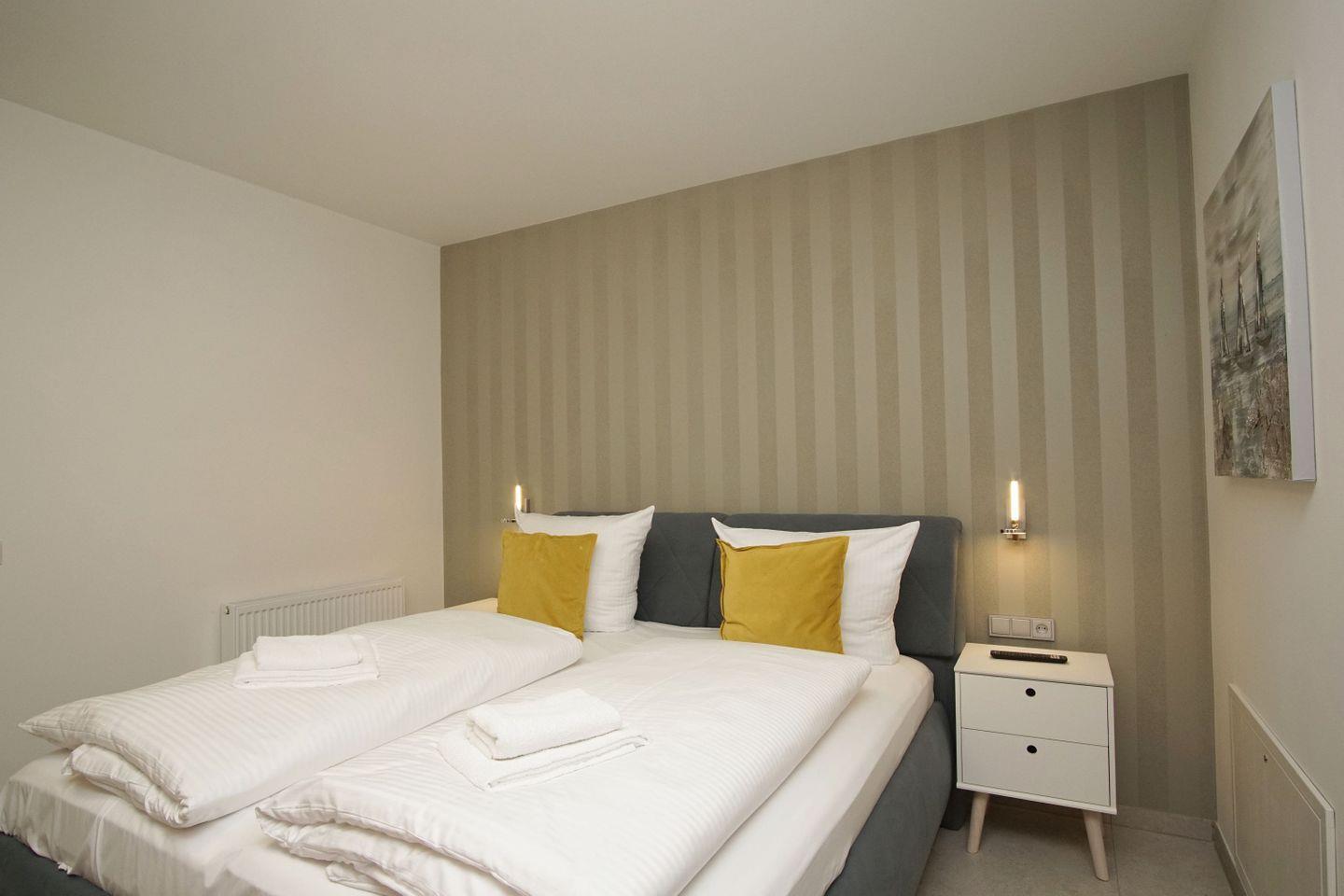 SCHLAFEN // ein Schlafzimmer mit bequemem Doppelbett, bequeme Schlafcouch im Wohnbereich (s.o.) ++