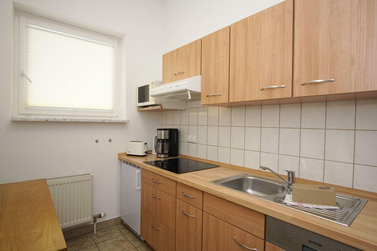 KÜCHE // separate Küche, 4-Platten Ceranherd, Kühlschrank mit Gefrierfach, Toaster, Wasserkocher, Kaffeemaschine, Spülmaschine, reichlich Besteck, Geschirr und Küchenutensilien ++