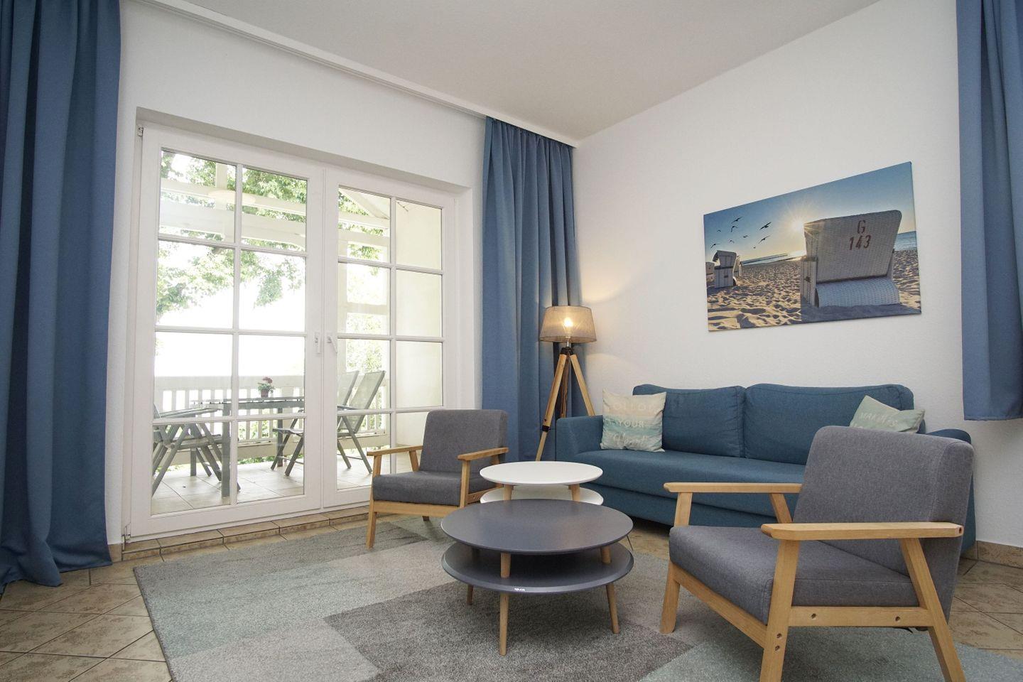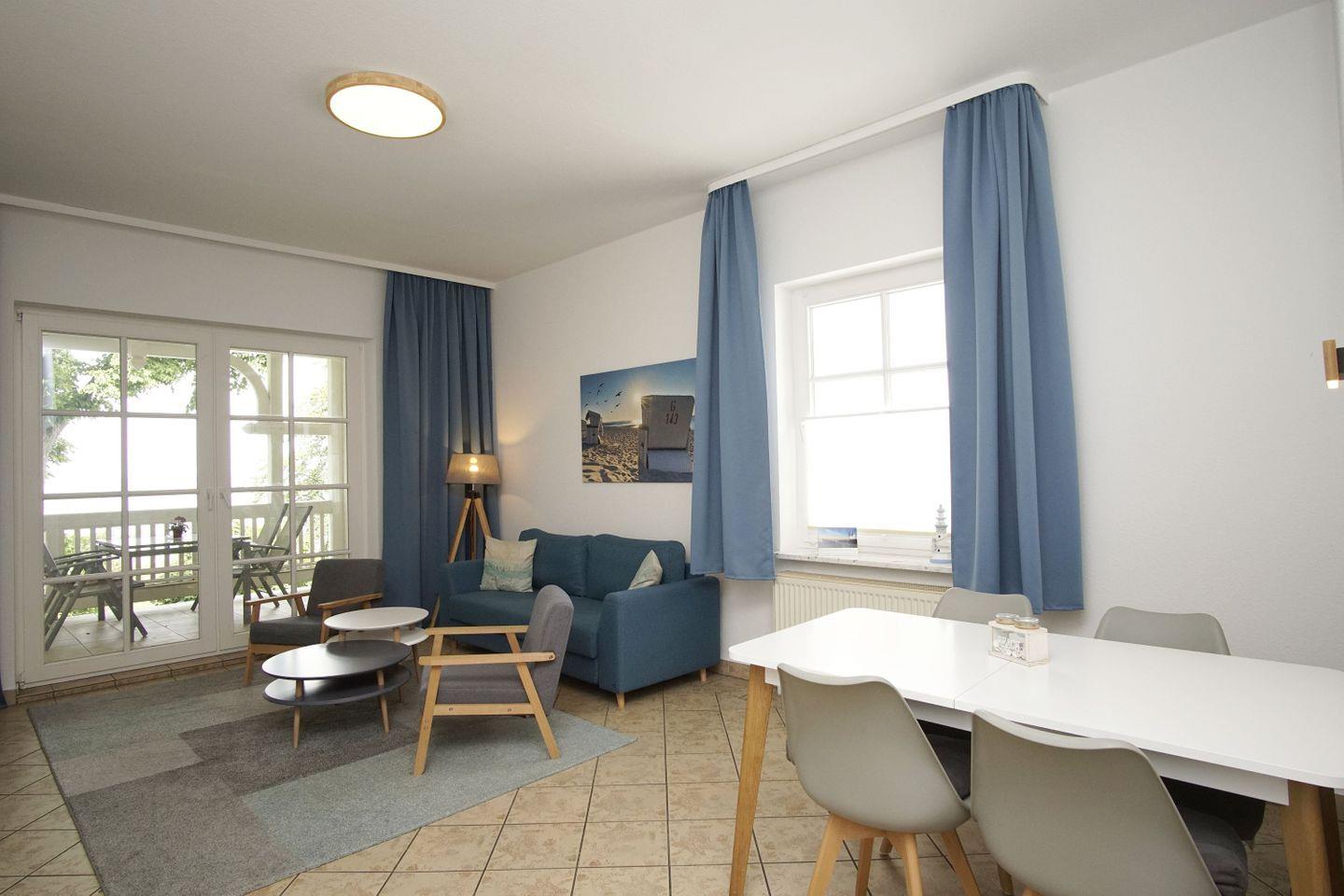 Moderne 2-Raum-Ferienwohnung mit Balkon und direktem Meerblick in Binz an der Ostsee.