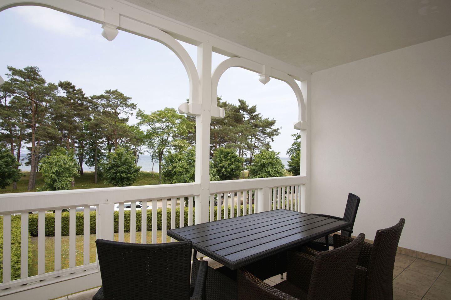 Moderne Ferienwohnung mit Balkon und Meerblick direkt an der Strandpromenade in Binz, ideal für entspannte Tage an der Ostsee.