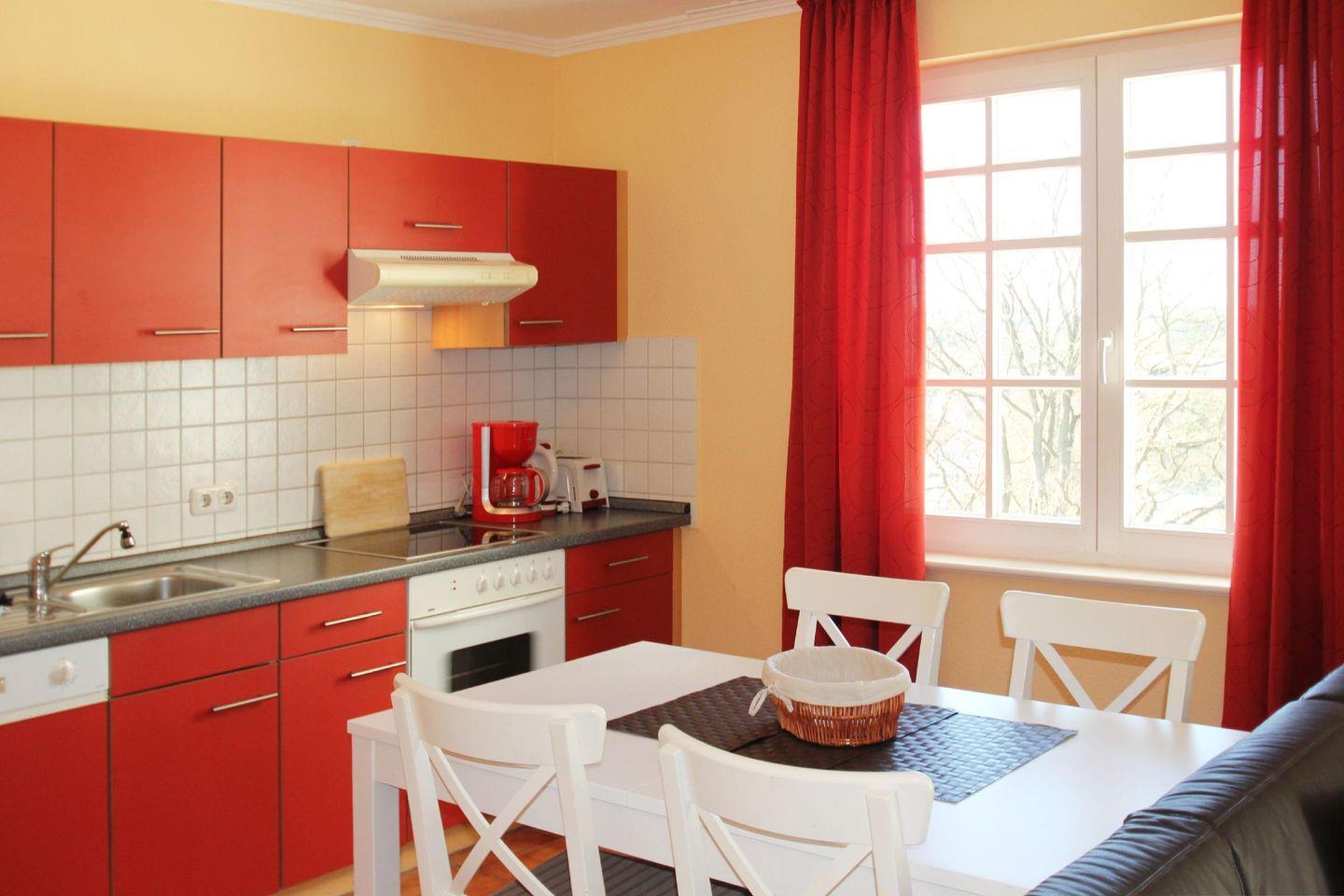 KÜCHE // separate Küche, 4-Platten Ceranfeld, Spülmaschine, Kühlschrank mit Gefrierfach, Backofen, Mikrowelle, Toaster, Wasserkocher, Kaffeemaschine, reichlich Besteck, Geschirr und Küchenutensilien ++