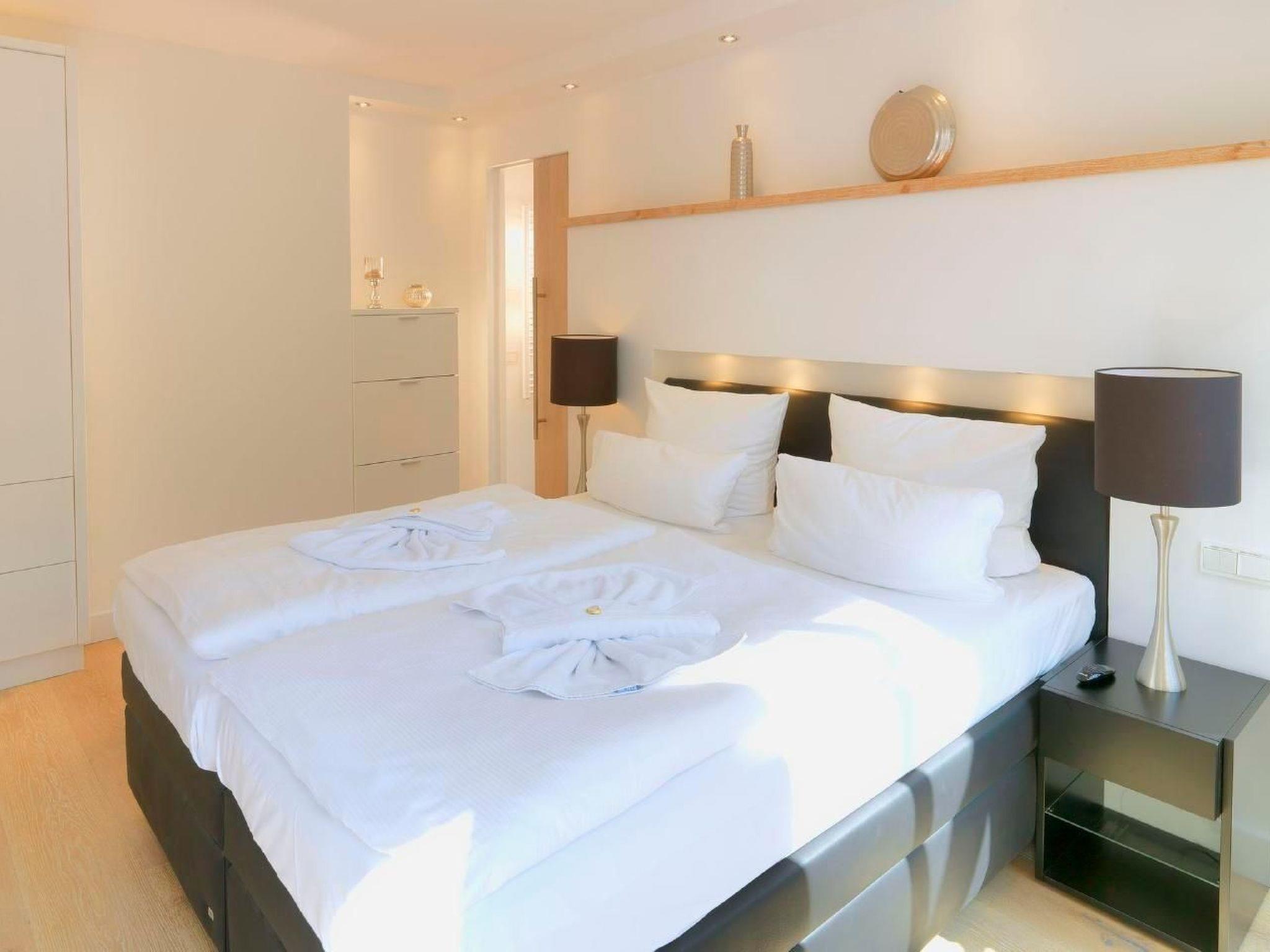 Das Schlafzimmer bietet mit seinem komfortablen Designer Boxspringbett den perfekten Schlaf im Urlaub auf Rügen. Das gesamte Schlafzimmer ist komplett verdunkelbar und verfügt über direktem Zugang zum Badezimmer.