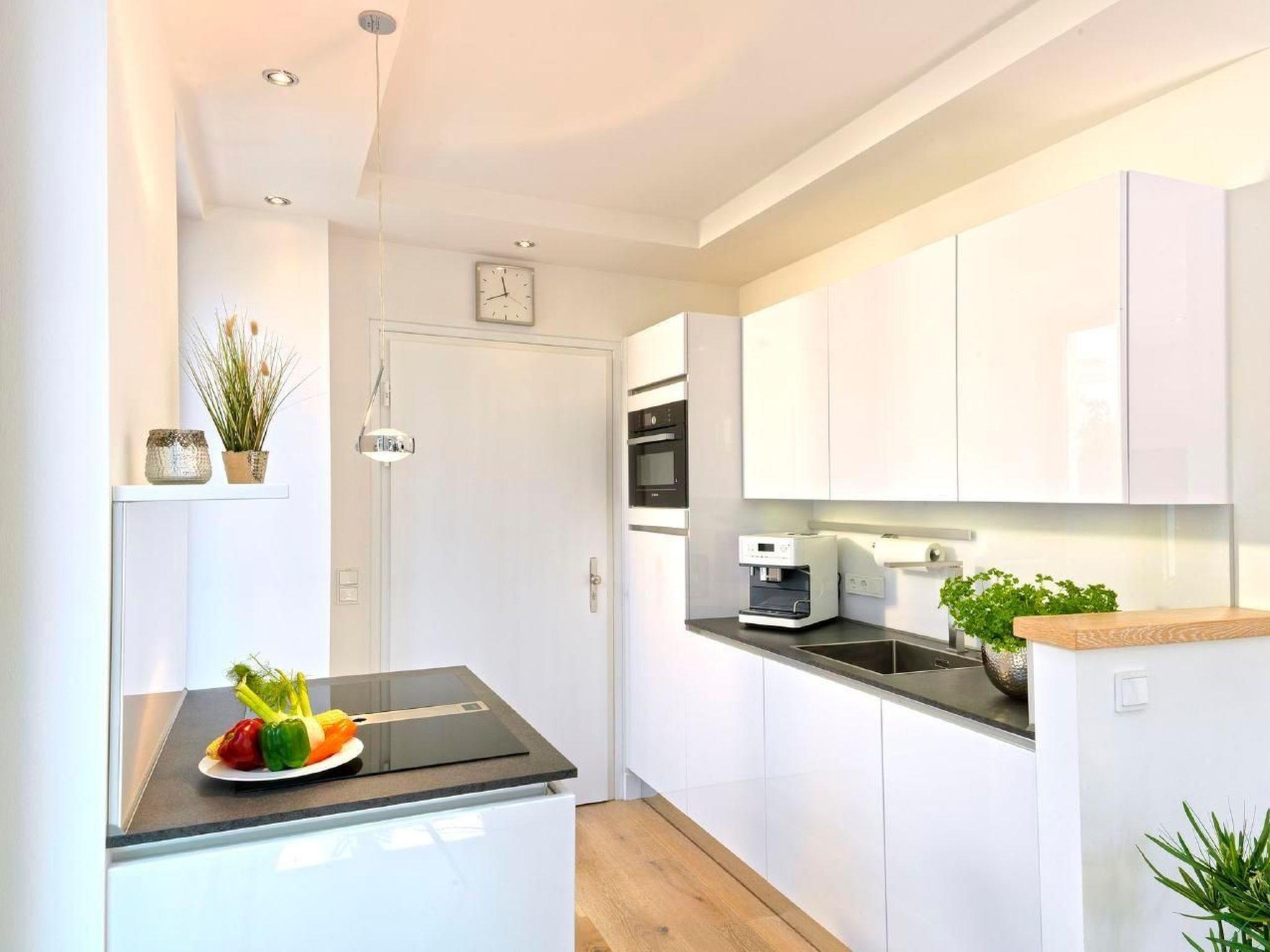 In der vollausgestatteten Küche finden Sie alles was man zum Kochen im Urlaub auf Rügen braucht. Angefangen bei Induktionsfeld mit Dunstabzugshaube, Backofen mit verschiedenen Funktionen, einem Miele Kaffeevollautomaten, Kühlschrank mit Gefrierfach oder auch einem Geschirrspüler. Der Glastisch mit zwei Stühlen ist ausziehbar und bietet einen Blick auf den Fernseher oder den Kamin.
