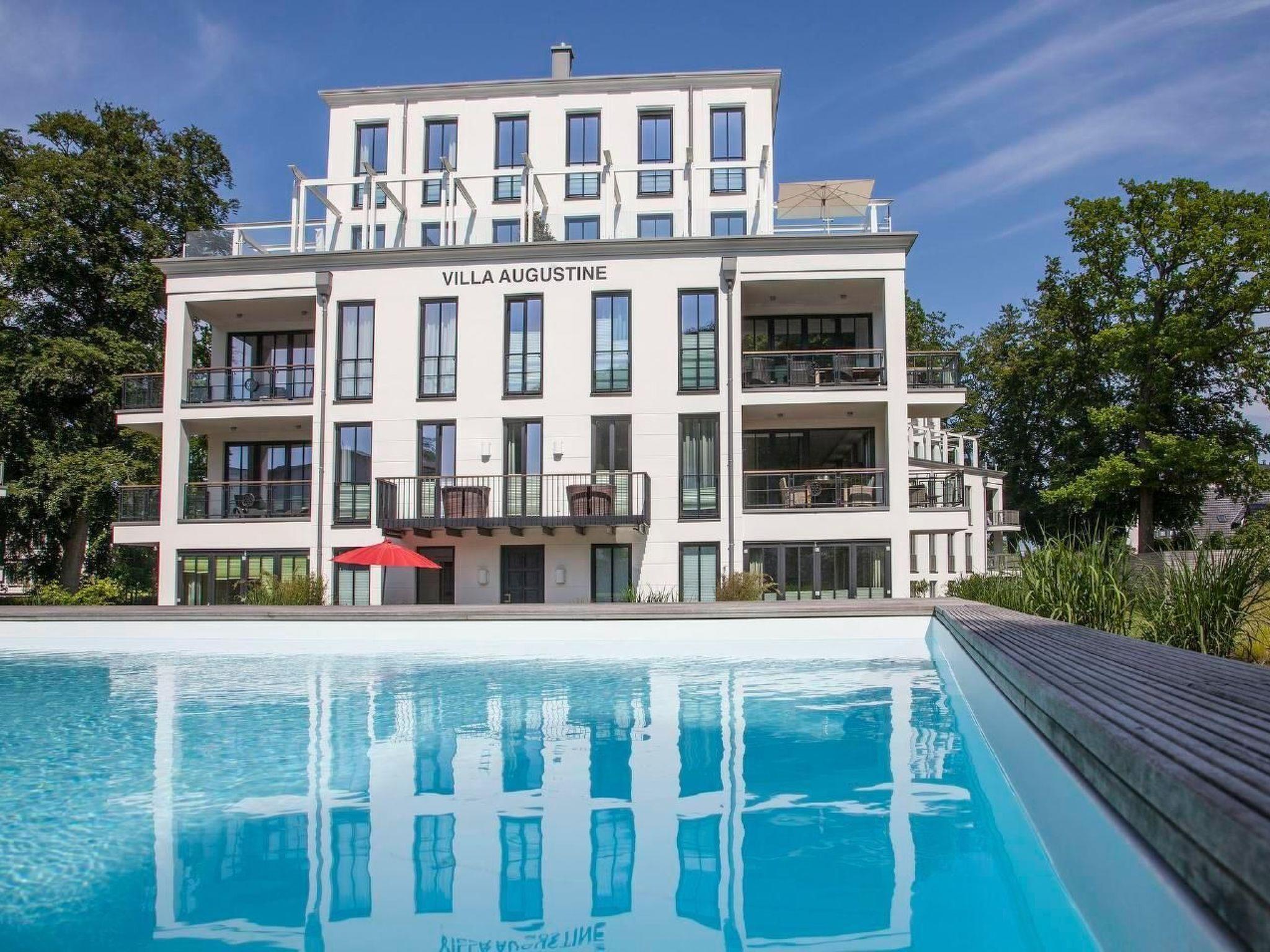Die Villa "Augustine" ist eine der drei Luxus Villen im Heinrich-Heine Park vom Herzen des Ostseebad Binz. Auf circa 6.000qm großen Grünfläche sind drei moderne Villen errichtet worden und sind für die pure Entspannung schon bekannt. Mit ihren eigenen zugeheitzten Swimmingpool und der privaten Tiefgarage ist der komplette Wohlfühl Urlaub vorprogrammiert.