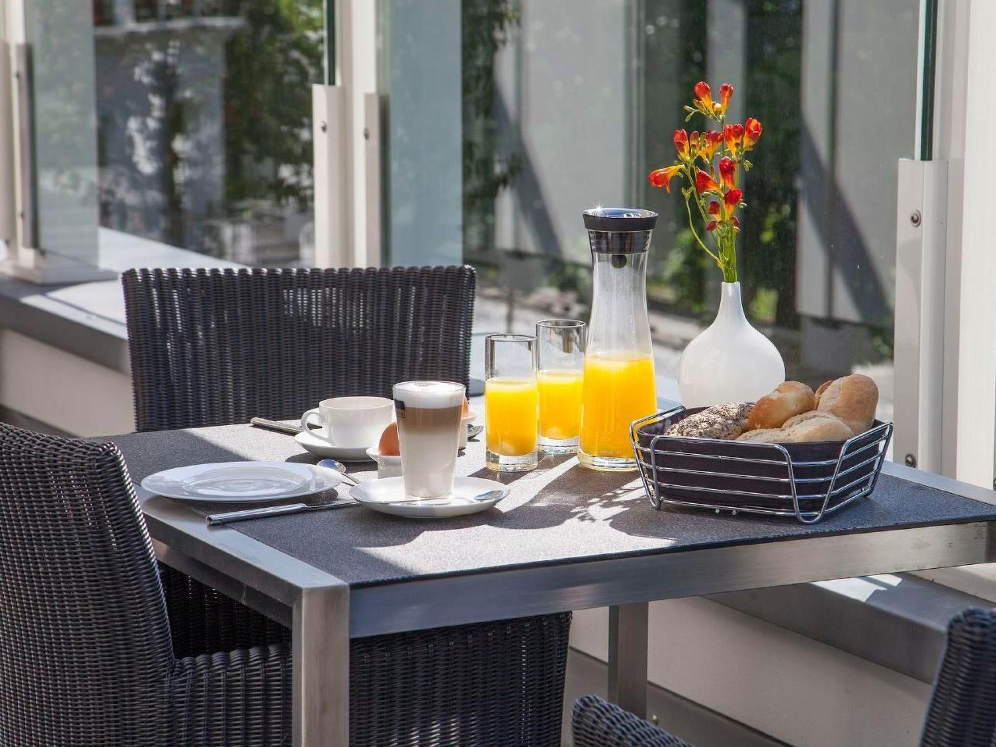 Ob morgens oder Abends können Sie jeden Sonnenstrahl genießen da Sie mit der Sonne sich bewegen können. Ein Tisch mit Stühlen, ein Sonneschirm, zwei Liegstühlen sowie ein Strandkorb befindet sich auf der Terrasse.