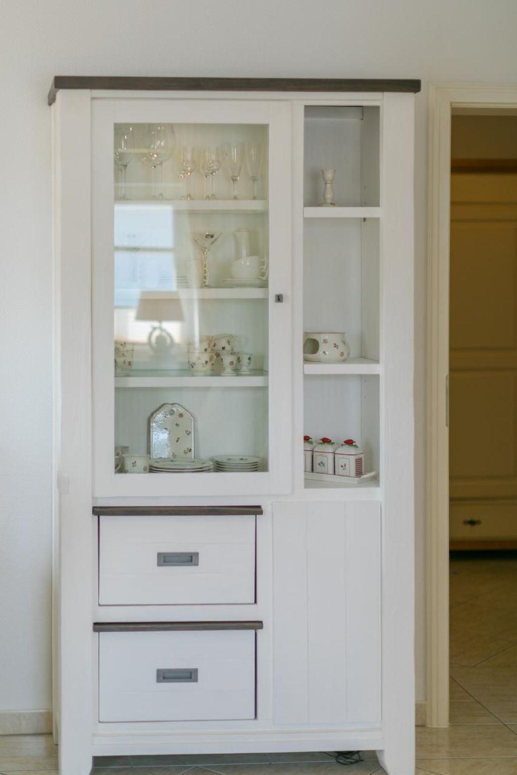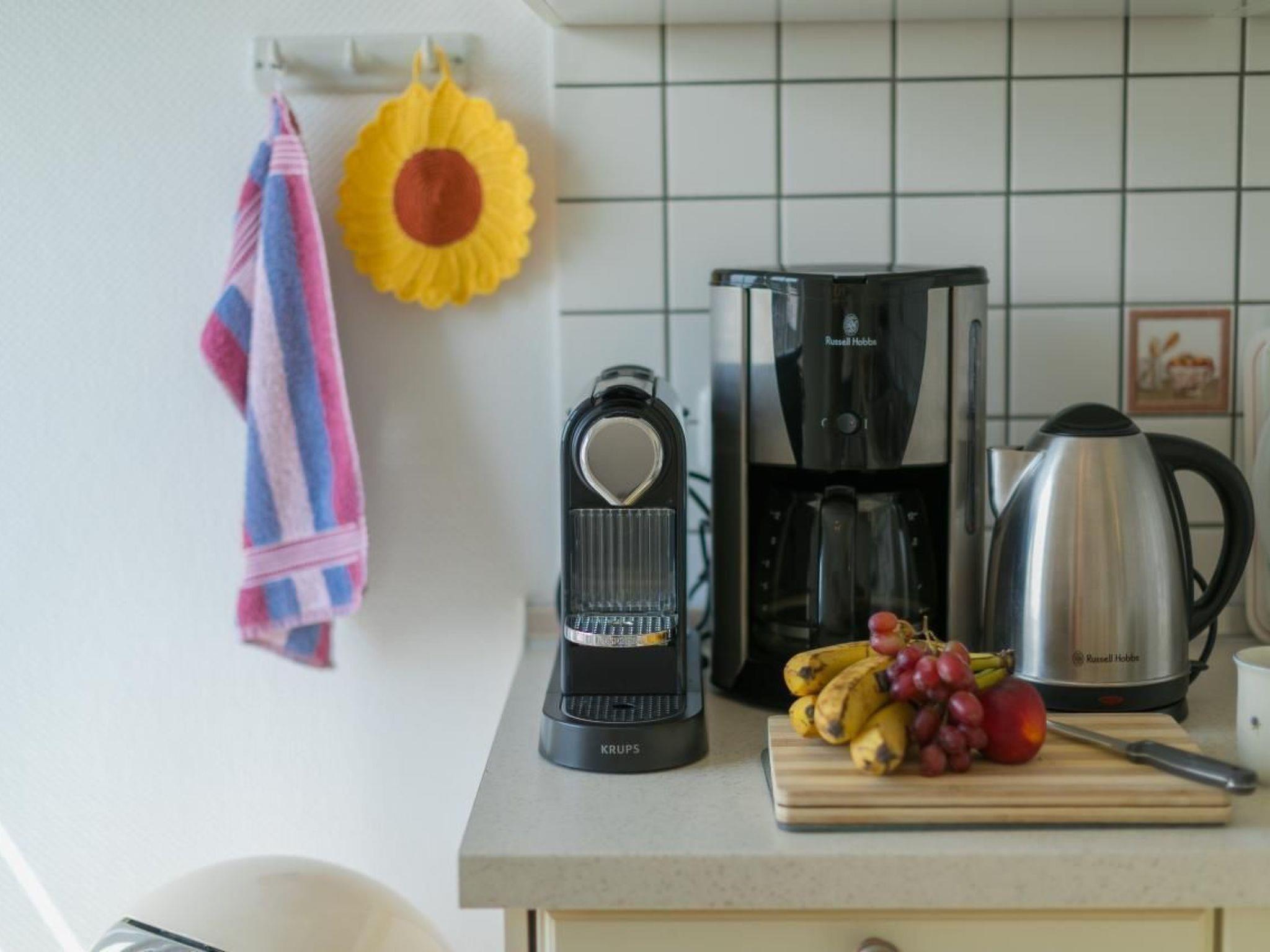 An das Wohnzimmer grenzt eine sehr gut eingerichtete Küchenzeile an (Geschirrspüler, Kühlschrank mit Gefrierfach, Cerankochfeld, Backofen, Mikrowelle, Nespresso-Maschine mit Milchaufschäumer + zusätzliche Kaffeemaschine, Toaster, Wasserkocher, hochwertiges Porzellan, vollständiges Kaffee- und Teeservice etc.).