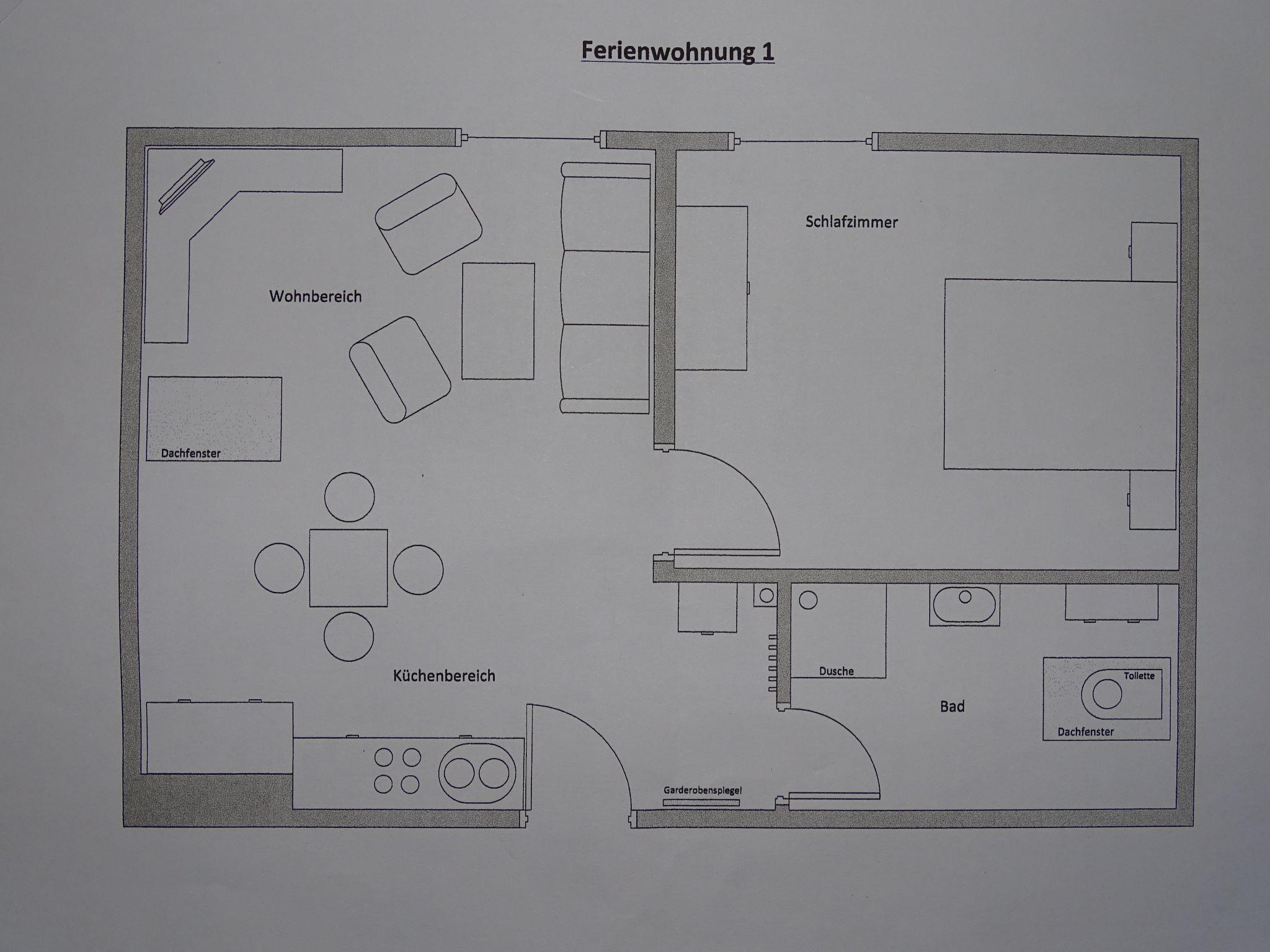 Entdecken Sie unsere gemütliche Ferienwohnung, die sich mit einer Grundfläche von ca. 48 m² als perfekter Rückzugsort für Ihre Urlaubstage anbietet. Die Ferienwohnung befindet sich im ersten Obergeschoss und verspricht mit ihrer durchdachten Ausstattung und der ruhigen Lage ein unvergleichliches Urlaubserlebnis. Genießen Sie die Ruhe und den Komfort dieser liebevoll eingerichteten Unterkunft, die dafür sorgt, dass es Ihnen an nichts fehlen wird.